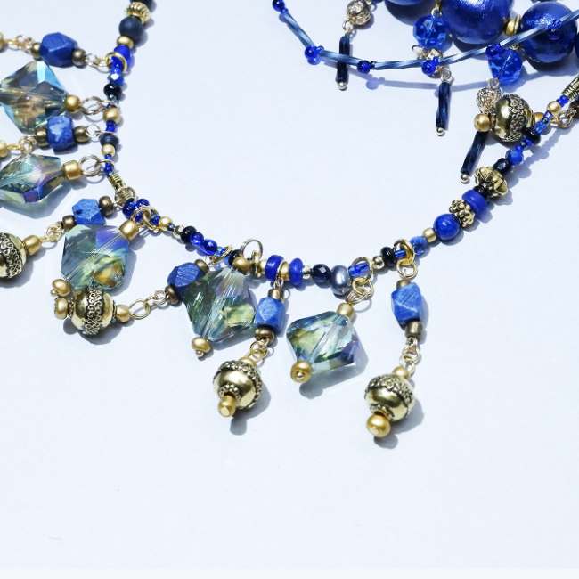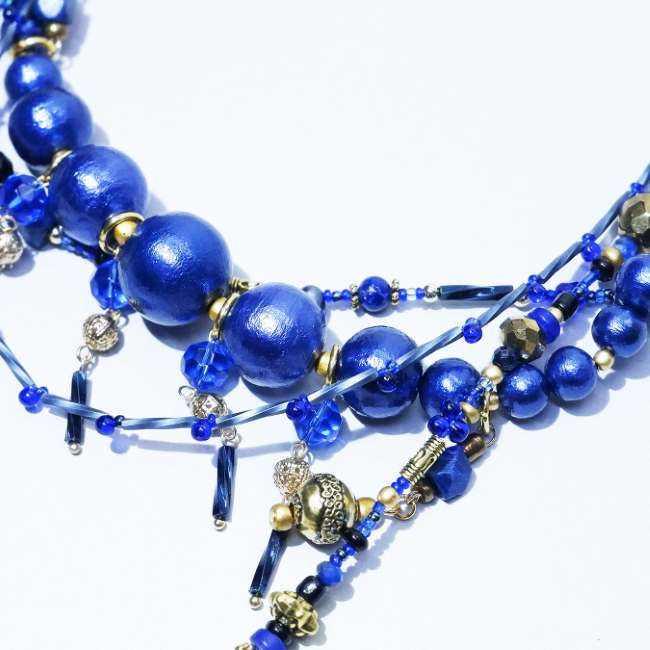 ■Ranunculus ■Blue Nite/ブルーナイト 一年で一番蒼く、星が光る夜に開かれる魔法使いの宴 ■SIZE 全長 : 45cm ■MAETRIAL ブラス/チェコガラス/淡水パール/ビンテージガラス/骨/クォーツ ■ABOUT Ranunculus : 和名【花金鳳花】 佇まいの嫋やかな美しさとは裏腹に その内には捕食者の心臓を停止させる程の毒液を秘めた花。 人で言えば他者を制圧する力。 どちらも太古の時代より生存して来た過程から身に付けてきた術 では装飾品であるジュエリーはどうであろうか… それらもまた、自然や人間の変化により姿形、意味合いを変え今に至る存在である。 そんな風に歴史や時間に想いを巡らせ この花の様に 身に付けて他者を圧倒する魅力を纏うジュエリーを制作。 Dazzled by your fasination... 身に付けた方の魅力が 目が眩む程眩しくなる様なジュエリーを。 ・モニターの発色具合によって実際のものと色が異なる場合があります。 ※こちらの商品は店頭でも同時に販売をしているため、タイムラグで在庫が無くなる場合があります。予めご了承下さい。