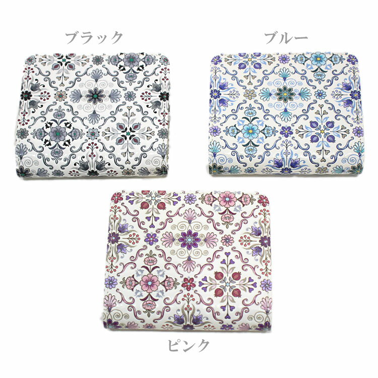 熟練の職人が、手書き友禅染めで濃淡を加え染め上げた色彩の美しい二つ折り財布です。 姫路産の真っ白な文庫革を使用し、カラーも鮮やか。 花をモチーフに左右対称にデザインされたオリエント柄は現在の流行に合わせてブランド独自にアレンジした創作柄。 各工程の細部にまでこだわった、一切妥協のない熟練した職人の技が光る逸品です。 浅草文庫の手になじむふっくらとした感触と繊細な技の冴えをご堪能下さい。 ※画像では木製の化粧箱に入っておりますが、2023年11月より白い紙製の化粧箱に順次切り替えておりますので 予めご了承のほどお願い申し上げます。 <サイズ>)縦9.5cm×横11cm×マチ2.5cm <重さ>約100g <素材>牛革 <原産国>日本 【仕様詳細】・開閉ホック式、オープンポケット×2(札入れ等) ・カード入れ×8 ・ファスナー式小銭入れ×1、小銭入れ内/オープンポケット×2、カード入れ×1 <カラー>ピンク、ブラック、ブルー