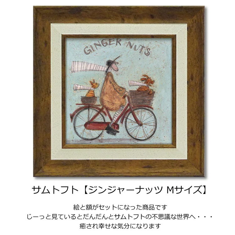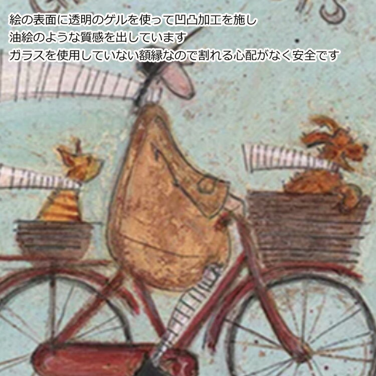 イギリスの作家サムトフトのアートフレーム 【ジンジャーナッツ】です。 絵の表面に透明のゲルを使って凹凸加工を施し、油絵のような質感を出しています。 ガラスを使用していない額縁なので割れる心配がなく安全です。 お部屋に一枚あなたの好きな絵を飾れば生活がより楽しく。 新築祝いなどの贈り物にも喜ばれています。 ◆作家紹介◆ サム トフト (イギリス女性作家) スイートピー色のウサギ、犬と共に仕事と生活をブライトンで過ごしている。 技術学校を卒業後、アートを学びたいと思い2003年リバプールの美術学校でたくさんの感性を研いた。 ギャラリーで個展を開き、海外でも活動し続けている。 仕様:絵の表面を特殊ゲル加工 サイズ(約):W40.5xH40.5xD1.8cm 重さ:約1kg 素材:樹脂フレーム 原産国:日本