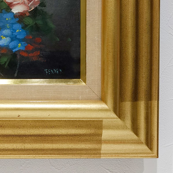 ━━━━━━━━━━━━━━━━━━━━━━━━━━━━━━━ FERRER(フェラー)/真筆・額付き・差し箱入り ━━━━━━━━━━━━━━━━━━━━━━━━━━━━━━━ 色とりどりの薔薇が咲き誇る、華やかなブーケを描いた油彩画。 赤・黄・白・ピンク・青の花々が豊かに重なり合い、柔らかな背景に 浮かび上がるように配置されています。繊細な筆致と鮮やかな色彩が 調和し、空間に明るさと品格を添えます。 F3号サイズは玄関や家具の上などにも飾りやすい寸法。額装は 銀座「古径」によるもので、重厚感と高級感を兼ね備えた金彩仕上げ です。 - 作 家: FERRER(フェラー) - 作品名: 薔薇 - 技 法: 油彩画 (キャンバスに油絵具) - 画 寸: 27.3×22 (cm)F3号 - 額外寸: 44.5x39x厚4(cm) - 総重量: 2.1(kg) - 作品状態: 良好。ただし額縁に微キズあり 額縁の向かって左側の表面に5ミリ大の塗装直し跡があります。 真筆・額付き・差し箱入り 銀座・古径の額装。額の前面は透明ガラス - 宅配便にてお届け(手渡し/日時指定可能) - 熨斗・ラッピング無料サービスあり ━━━━━━━━━━━━━━━━━━━━━━━━━━━━━━━ 額縁につきまして ━━━━━━━━━━━━━━━━━━━━━━━━━━━━━━━ 本作品は、銀座・古径製の高級額縁に収められていますが、 中古のため、左側表面に約5mmの塗装直し跡を含む、微細なキズやスレ アタリがございます。 ご希望に応じて、新品の額縁に交換することも可能です(有料・約2万円)。 交換をご希望の際は、ご注文時にお申し付けください。 ━━━━━━━━━━━━━━━━━━━━━━━━━━━━━━━ ご注意事項 ━━━━━━━━━━━━━━━━━━━━━━━━━━━━━━━ ・やまとや画廊の商品を「支払方法が銀行振込のみ」「電話番号が不 明」「電話が通じない」といったネットショップで絶対に購入しない でください。 ・本ページ内の文章・画像の無断使用・転載・流用は固く禁じます。 (c)やまとや画廊 ━━━━━━━━━━━━━━━━━━━━━━━━━━━━━━━ 納 期 ━━━━━━━━━━━━━━━━━━━━━━━━━━━━━━━ ・在庫あり。ご注文確認後3営業日以内に発送します。 ・年末年始・夏季・GWの長期休業期間にはそれより長くかかる場合 があります。お急ぎの場合はお問い合わせください。油彩画「薔薇」F3号 銀座・古径の額装 飾る場所を選ばない、華やぎの薔薇の油彩画