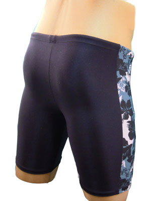 競泳水着 メンズ 練習用 ボックス 【サイズ:M】メンズスイム ロング パンツ シャドーハイビスカス スイミング ランニング ウォーキング スポーツ用スパッツ 水着 柄物 ブラック 競泳 フィットネス水着