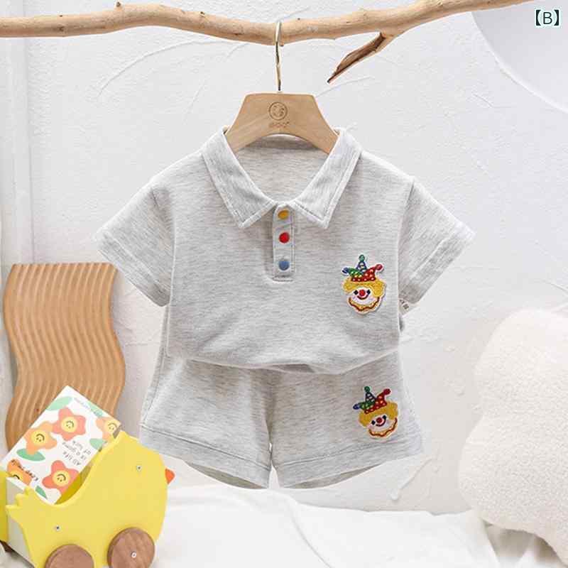 ベビー服 半袖 快適 かわいい 男の子 夏服 ピエロの 半袖 ツーピース スーツ 女の子 赤ちゃんの 服 スプリット 夏の 薄手の お出かけ