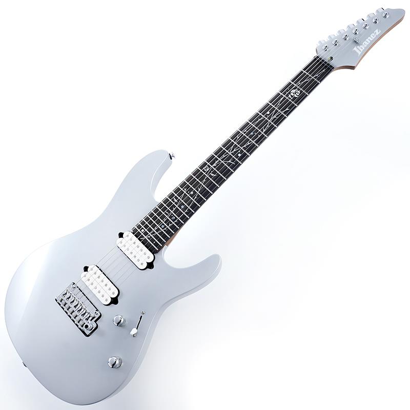 ■商品紹介本数限定特価!!Tim Henson (Polyphia) Signature 7 Strings Model feat. Fishman PU !!AZシリーズをベースに Fishmanピックアップを搭載し、Tim氏本人が Tree Of Death と名付けた、指板インレイ・デザインが印象的な、Tim Henson(Polyphia)シグネチャー・7弦・モデル!!◆AZ7 Oval C Roasted Maple neck加熱処理されたメイプル材をネックに使用しています。加熱処理をすることで、形状安定性、反りに対する耐久性、耐水性、温度変化に強いといった特長があります。ネック裏はサテンフィニッシュで仕上げ、スムーズな弾き心地を提供します。自社・他社問わず数十種類のギターのネック・グリップを計測、分析して完成したオリジナル・ネック形状です。指板とネックの接着面から指板エッジにかけてなだらかに落とし込むようにシェイピングし、指板エッジを丸めたコンフォート・グリップです。ボールミル加工によって正確に且つ確実にその形状を再現しています。ネック幅はナットで47mm、24フレットで66mmに設定し、ロー・フレット部では握り込みやすさ、ハイ・フレット部にかけては親指をネック裏に置くクラシカル・スタイルでの演奏性を特に配慮した形状となっています。◆Luminescent side dot inlay照明などでめまぐるしく変化する演奏環境に対応してくれる、高い視認性を誇るの蓄光材ドット・ポジションを採用。暗いステージの上でも自分の弾きたい音を見失うことはありません。◆Stainless Steel Fretメンテナンス製に優れ、音の立ち上がりが早く、コード弾きでも分離が良く、単音弾きでもクリアな出音が特長です。◆A shallow body back contour and Super All Access Neck Jointコンテンポラリーなデザインを目指したオリジナル・ボディ形状です。Ibanezの代表機種であるSを想起させる、薄く仕上げたボディ・コンターと大きめのエルボー・コンターは、プレイヤーとギターとの一体感を生み、演奏性向上にも大きく貢献します。ボディのくびれを深くすることで抱えた時やステージ上での取り回しが良く、高い演奏性を実現しています。ボディ表面はR3mm、裏面はR8mmと表裏で角Rを変えており、座位/立位に関わらずギターを抱えた瞬間にフィット感が感じられるエルゴノミックな設計です。ボディ裏面から8mmの高低差で段彫りし、さらにネックとの接合部を球面に仕上げることで高い演奏性を実現したSuper All Access Neck Joint。低音弦側のカッタウェイを浅めに設計し、ボディとネックとの設地面積を最大化することで、高い演奏性を保持しながらもサスティーンとレゾナンスの良さをも両立しています。またホーンとカッタウェイはIbanezの代表機種であるRGを彷彿とさせる、抉りの大きな形状。ハイポジションでの弾きやすさを実現しています。TOD10と同じ、グロス・シルバー系カラーで仕上げています。◆Fishman Fluence Tim Henson Signature Series 7 pickupsアグレッシブなリード、バッキングサウンドからシングルコイルのクリーンのようなサウンド、更にはアコースティックギターのようなサウンドまで、幅広いサウンドを奏でられるTim Hensonシグネチャーピックアップ。※006P電池使用〇Neck PickupVoice 1: 太く滑らかなネックポジション・ハムバッカーサウンドVoice 2: ナイロン弦ギターの代わりとなるほどにクリーンなサウンドVoice 3: 滑らかなネックポジション・シングルコイルサウンド〇Bridge PickupVoice 1: リードトーンに最適な、Fishman 標準Voice1を改良したサウンド。Voice 2: Timが好みのブリッジポジション・ハムバッカーサウンド。Voice 3: ネックポジションピックアップのコイルと組み合わせた、Timが理想とするシングルコイルサウンド。◆Gotoh T1572S tremolo bridge with Steel saddles 10.5mm string spacing Snap and hold arm socket多くのプレイヤーやブランドから、トレモロ・ブリッジの決定版として定評のあるGOTOH 510ブリッジを、IbanezとGOTOHとのコラボレーションで新生させたブリッジです。歯切れのよいクリスピーなサウンドとプレーン弦のきらびやかな高音が特長の切削スチール製サドルとスチール製のイナーシャ・ブロックを採用しました。弦間ピッチは10.5mmのナロー・スペーシング設計で、スキッピングやハイブリッド・ピッキングを多用するプレイヤーが要求する、弦間をまたいだピッキングのしやすさを追求しました。また、Ibanez Edgeトレモロのアームや、ウルトラ・ライト・トレモロ・アーム(カーボン製/UTA20/別売)も流用出来るアーム・ソケットを採用。従来のアームの様に回し入れることなくスナップ・インでアームを装着できます。プレイヤーの好みに応じて、アーム角度の固定/開放を可能にしたアーム・トルクアジャスト機構も搭載しています。加えて、スタッドに埋め込まれたイモネジでがっちりと固定することで、チューニングのスタビリティやレゾナンスに大きく貢献するスタッド・ロック機構をも標準装備しています。スムーズなアーミングやアームアップが可能な2点支持フローティングを採用しています。◆Graph Tech nutすべりの良いチューニングの安定性を誇るGraph Tech製のナッ