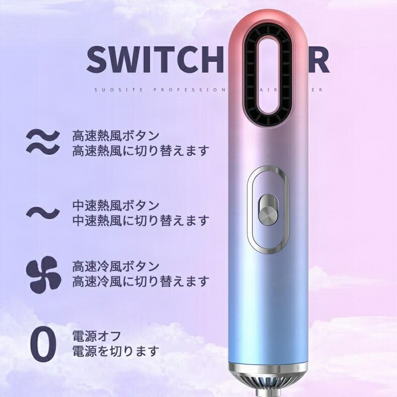 商品説明 商品紹介 【1200W大風量&3段階調節】ドライヤーは1200Wの高出力モーターを搭載し、短時間ですばやく乾かします。高速冷風-中速熱風-高速熱風の3つのギアで調節できます。3段階の風速調節と組み合わせて、さまざまなスタイリングに対応し、片手で操作できます。 【マイナスイオン& 4大スマート保護システム】 このヘアドライヤーは、高濃度のマイナスイオン装置を内蔵して、髪から根元まで静電気を保護するためにマイナスイオンを大量に放出することができます。4大スマート保護システムを持っています:スマート温度制御システム(58回/秒リアルタイムで正確に温度を制御して過熱損傷を防止します)、過熱断電保護チップ(設備温度が高すぎて、直ちに電力供給を停止します)、電磁放射を下げます(放射線の危害を遠ざけます)、精選純銅線コア(安全が保障されています) 【軽量&低ノイズ】 持ち手は人間工学に基づいて設計されており、腕への負担を大幅に軽減し、使用時の腕の疲労に悩まされることはありません。また、多くの次元でノイズを減らして調教を最適化して、効果的に鋭い騒音を弱めて、快適な造形体験を享受します。 注意 ※手動測定による1〜3mmの測定偏差を許容してください。 ※商品撮影にはデジタルカメラを使用しております。 色彩再現には最善を尽しておりますが、お使いのモニタ環境によって多少異なる場合があります。 ※掲載商品と実際の商品とは、色・柄の出方が多少異なる場合があります。 関連キーワード ドライヤー ヘアドライヤー 速乾 大風量 マイナスイオン 高級 人気 軽量 静音 800W 3段階温度調節 大風速 業務用 短時間 軽い 高風速 コンパクト 静電気除去 低騒音 スピーディー 過熱保護 おしゃれ 髪に優しい コンパクト 美容家電 髪質改善
