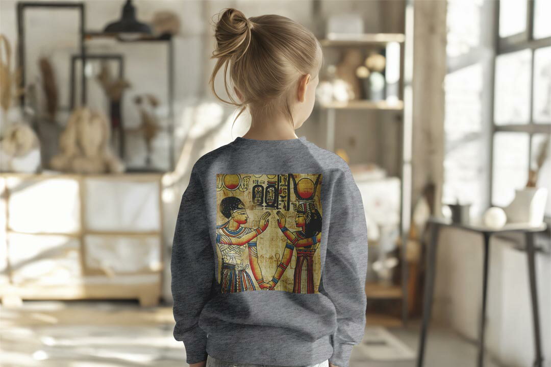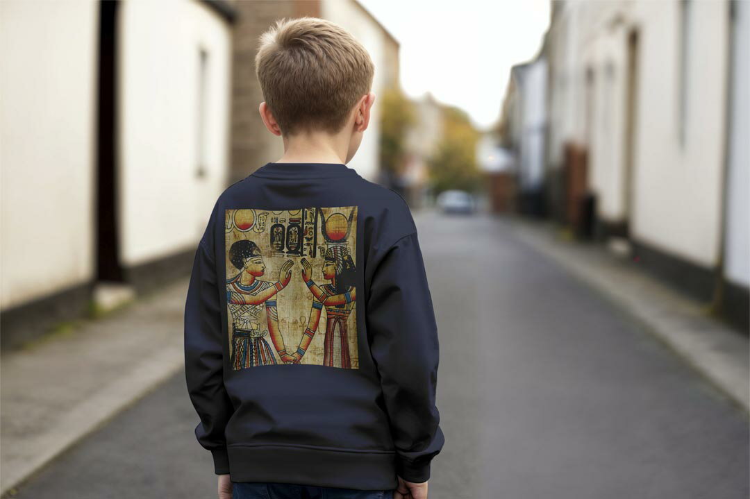 選べる3カラー バックプリント スウェットレーナー キッズ 男女兼用 男の子 女の子 ユニセックス unisex 長袖 デザイン リブ ホワイト ブラック 白 黒 グレー ネイビー 110 130 150 trainer sweat 001535 エジプト 壁画