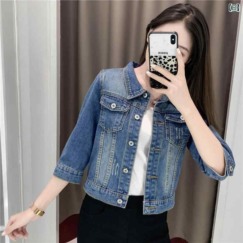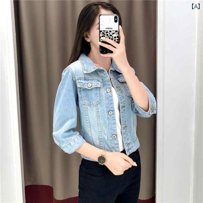 春 コーデ レディース ファッション オシャレ アイテム カワイイ コーデ シンプル きれい ナチュラル 上品カジュアル 用 デニム ジャケット レディース スリム 春 韓国ファッション トップス カジュアル 七分袖 ジャケット