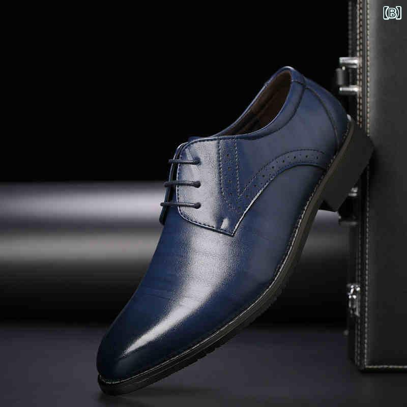 革靴 男性用 ビジネス カジュアル レトロ オフィス 普段使い 尖頭 ブラック ブラウン ブルー イエロー 38 39 40 41 42 43 44 45 46 47 48