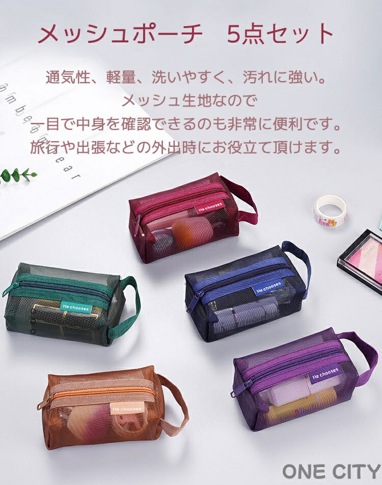 商品説明 color="#000000">商品名 メッシュポーチ 5点セット 通気性、軽量、洗いやすく、汚れに強い。 メッシュ生地なので一目で中身を確認できるのも非常に便利です。 旅行や出張などの外出時にお役立て頂けます。 いろいろな小物をさまざまなカテゴリに 分類して整理できて、 自宅やオフィスをきれいに保つことができます 素材 width="291" bgcolor="#ffffff"> ナイロン+ポリエステル bgcolor="#f0f0f0">生産国 width="291" bgcolor="#ffffff">中国 bgcolor="#f0f0f0">サイズ color="#000000"> 5cm*7cm*12cm セット内容 5点セット(各色一点) 注意 width="291" bgcolor="#ffffff"> PC環境・光の具合により、色や素材のイメージが写真と若干異なる場合がございます。 モデル・写真に使用されているアクセサリー・小物は別途記載が無い限り付属いたしません。 商品に不良があった場合は、商品到着から5日以内にご連絡いただければご返金・交換対応させて頂きます。 商品のサイズは、全て平置きにて外寸を測定しております。 商品によっては+-0.5cm〜1cmの誤差が発生してしまう場合がございます。 該当商品は他店と在庫共有です。タイミングにより、在庫ズレが生じる場合がございます。予めご了承ください。