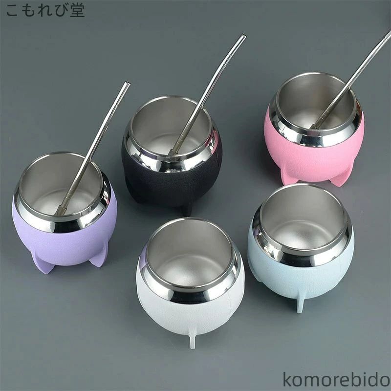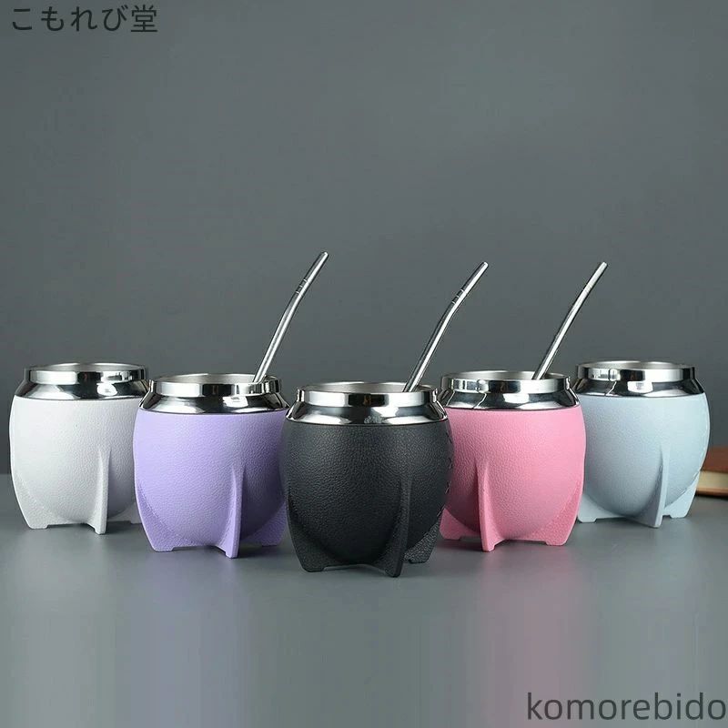【送料無料】280ml かわいい おしゃれ コーヒーカップ カップ 保熱保冷 ブラ ステンレス コップ ストロー付き ボンビージャ付き