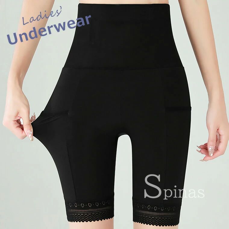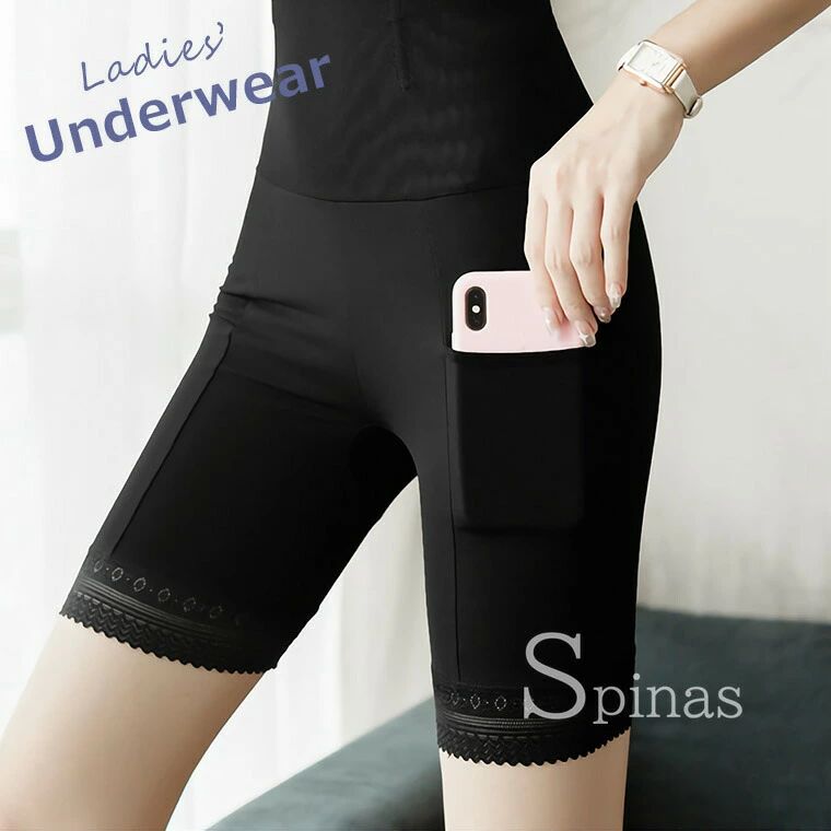 ぽっこりお腹を引き締めてくれるポケット付きショーツ2枚組&6パターン? ガードルショーツ レディース ショーツ 裾レース 5分丈