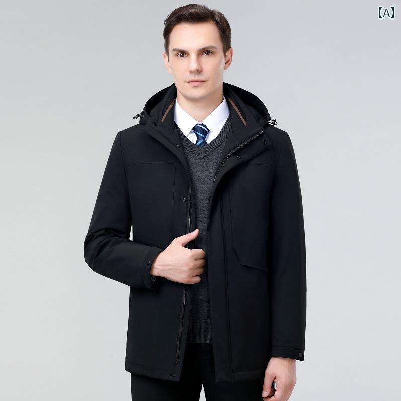 ・カテゴリ: ダウンジャケット・スタイル: ベーシック・テイスト: アーバン・対象性別: メンズ・対象年齢層: 成人・対象層: ミドルエイジ向け・主な素材: 化学繊維混紡・素材混率(表地): ポリエステル100%・裏地素材: ポリエステル・裏地混率: ポリエステル100%・中綿: ホワイトグースダウン・ダウン比率: ダウン86~90%・充填量: 約90g・フィルパワー: 700FP・機能: 透湿、防水、防風、防汚、耐寒・防寒レベル: -20℃~-5℃対応・フィット: ルーズフィット・着丈: 普通丈・厚み: 厚手・襟元: スタンドカラー・フード: フード付き・前開き: ジッパー・柄: 無地・加工: 免アイロン加工・デザイン: ポケット付き・着用シーン: カジュアル・着用シーズン: 冬・カラー展開: ブラック、ダークブルー・サイズ展開: M、L、XL、XXL、3XL、4XL、5XL