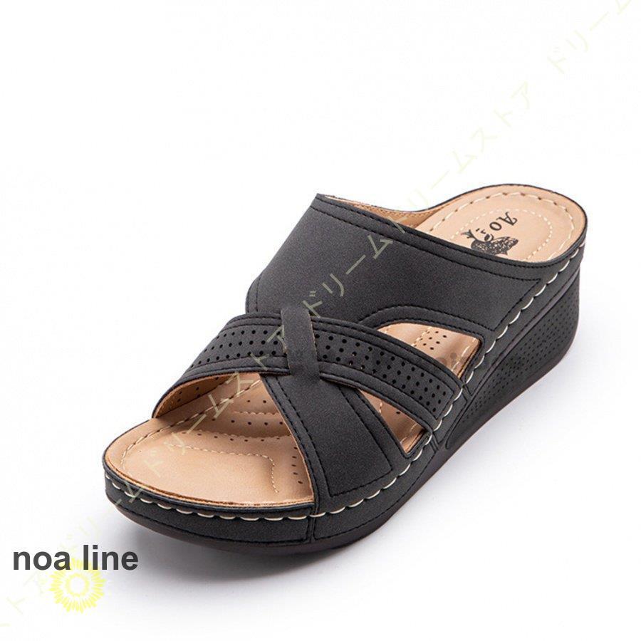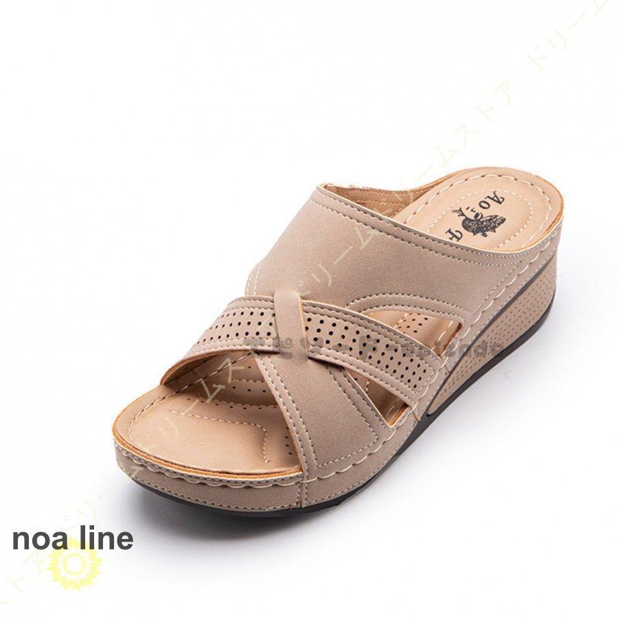 商品情報足に優しいサンダル 厚底サボサンダル ウェッジサンダル コンフォートサンダル プラットフォーム【デザイン】シンプルなオープントゥデザインは、ほどよくヌーディーに肌も見えて、足をキレイに見せてくれる。スリッパのような踵のないデザインで着脱もスムーズで楽チン◎今年顔の足元にしっかり演出します◎オンオフ問わず履ける使いやすさが魅力です。 【コーディネート】デニムや、ボリュームのあるフルレングスボトムの足もとにぴったり。カジュアルなスタイリングの外しやガーリースタイルのプラスワンアイテムとして。【素材・着用感】オン・オフ履けるおしゃれパンプス。ご近所へのお買い物や、ちょっとしたお出かけなど。スリッポンのように脱ぎ履きラクチンだから、ヘビロテ間違いなし!スリッパみたいに楽な履き心地なので、オフィスで使用する室内履き用としても活躍しますよ。若い女の子から大人女子まで、女性のお客様にご愛用いただいております。 不良品についての説明基づいて掲載しています