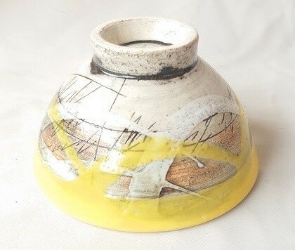 【ギフト/贈答品】【鶴林窯 林英樹】黄釉刻紋飯碗