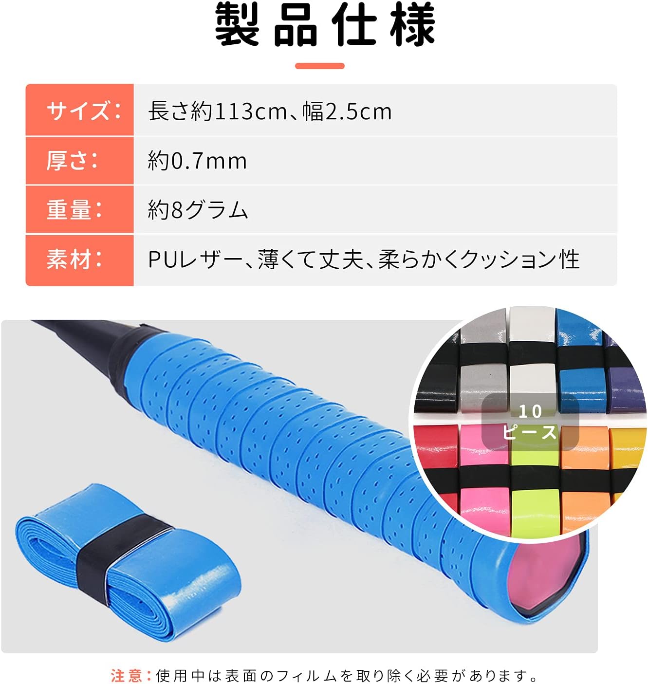 📦【製品仕様】5本 サイズ:長さ約113cm、幅約2.5cm、厚さ約0.7mm 重さ:約8g 素材:PUレザー 薄くて丈夫で、柔らかく、クッション性があります。ご注意:表面の薄膜は使用時に引き裂かなければなりません。 🏑【緩衝耐久性】生地の伸縮性を採用し、巻いても伸びにくく、安定したボリューム感を発揮します。表面が露出しやすく、ハンドルのねじれを軽減!衝撃の瞬間に力を集中!クッション性と耐久性に優れています。 🏸【簡単に交換する】ベルトを持っていれば簡単に交換できます。面倒なハンドル交換の仕事はありません。ゴルフのグリップが細いと、悩んでいる人も安心してください。グリップを太くしたい時は、重ねて巻くだけで簡単です。 🎣【広く使う】テニス、バドミントン、釣り竿、ゴルフクラブ、太鼓のハチなど、幅広く使うことができます。軽くて持ちやすいです。 🎾【その他の機会】ラケットの試合以外に、トレーニングに使うバーベル、ダンベル、自転車とバイクの取っ手、釣り竿の取っ手、道具なども取っ手の滑り止めとして使えるので、とても便利です。使いやすいグリップは、ぜひスポーツ、レジャー、仕事などに使ってください。