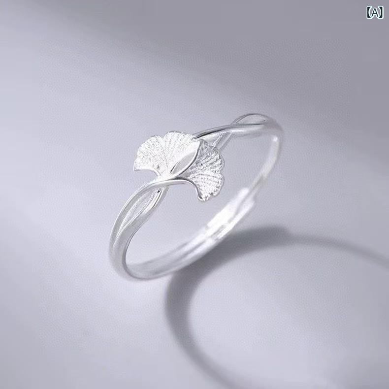 指輪 レディース 夏 新品 小さめ 銀杏の葉 推し 調整可能 電気メッキ加工 シルバー990 かわいい・造型: 幾何型・処理工芸: 電鍍・スタイル: ファッションOL・材質純度: 99銀・製品カテゴリ: 手飾・対象者: 女性・流行要素: 銀杏・スタイル分類: ファッション通勤・色: 1.5g・素材: 銀