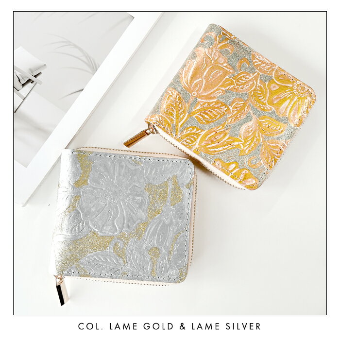 本革 ラメフラワー 型押し ラウンド型二つ折り財布 【商品説明】 シンプルでコンパクトながら、使いやすさにこだわった本革二つ折り財布です。 立体的な花の型押しと繊細なラメがきらめく、本革ならではの存在感が魅力です。 内側には落ち着きのあるベージュPUレザーを使用し、上品な印象に仕上げました。 ハイミロン製の巾着袋付きで、贈り物にも最適な特別感のあるアイテムです。 ご注文前にお読み下さい ※受注確認後の作成となりますので、発送までに3〜5営業日ほどかかります。 ・メール便の破損等の保証はできません。 ・細かい傷汚れや箱の潰れなどがある場合がございますがご了承下さい。 ・商品につきましては、細かい傷などありますが、ご了承ください。 ・衛生上、返品交換は受けれません。 ・メール便はポスト投函となりますので、日時の指定はできません! ・ドメイン指定の設定をされている方は銀行振り込みや配送メールが届きませんので trendytpu@shop.rakuten.co.jpのアドレスを解除してください。 【レビューの書き方がわからない方】 ↓↓↓ こちら!! 最新の入荷、企画情報などお得な情報を無料にて配信!ご登録はコチラ