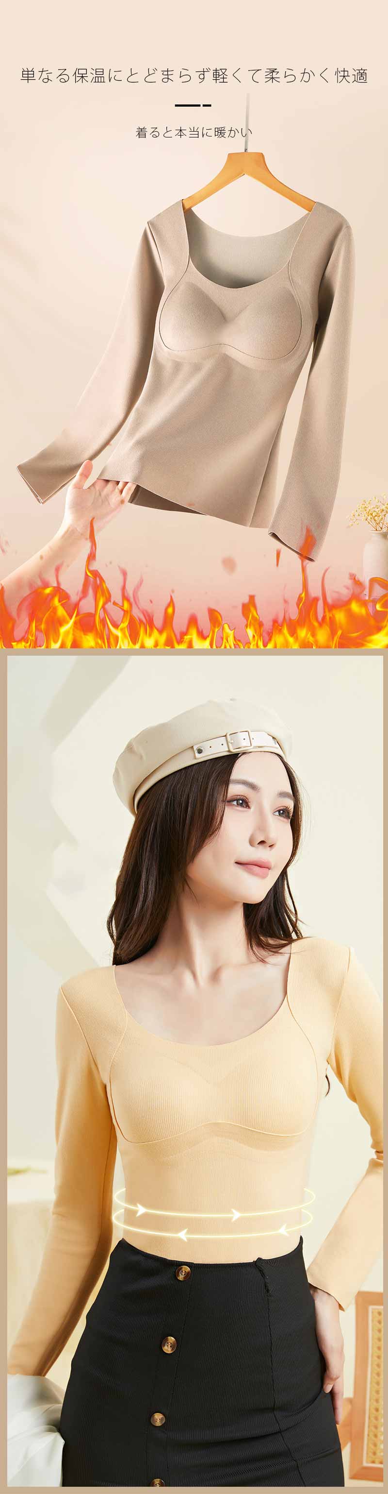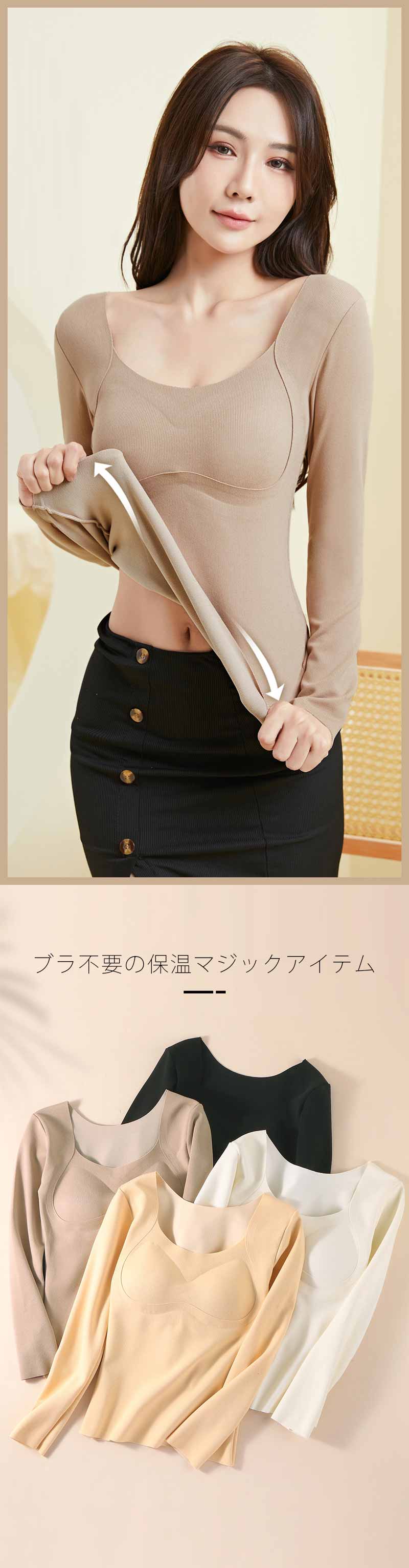 カップ付き 長袖 ブラトップ 長袖Tシャツ レディース インナー トップス Tシャツブラ 秋冬 下着 インナーシャツ カットソー ブラジャー ブラ パッド付き 無地 締め付けない パッド付き 長袖Tシャツ 送料無料