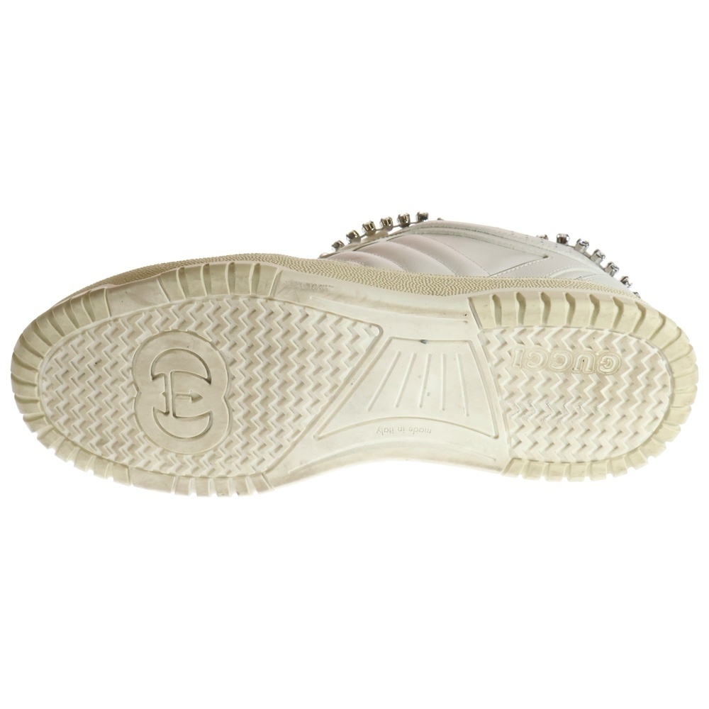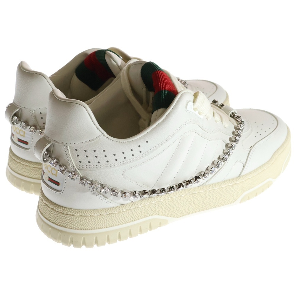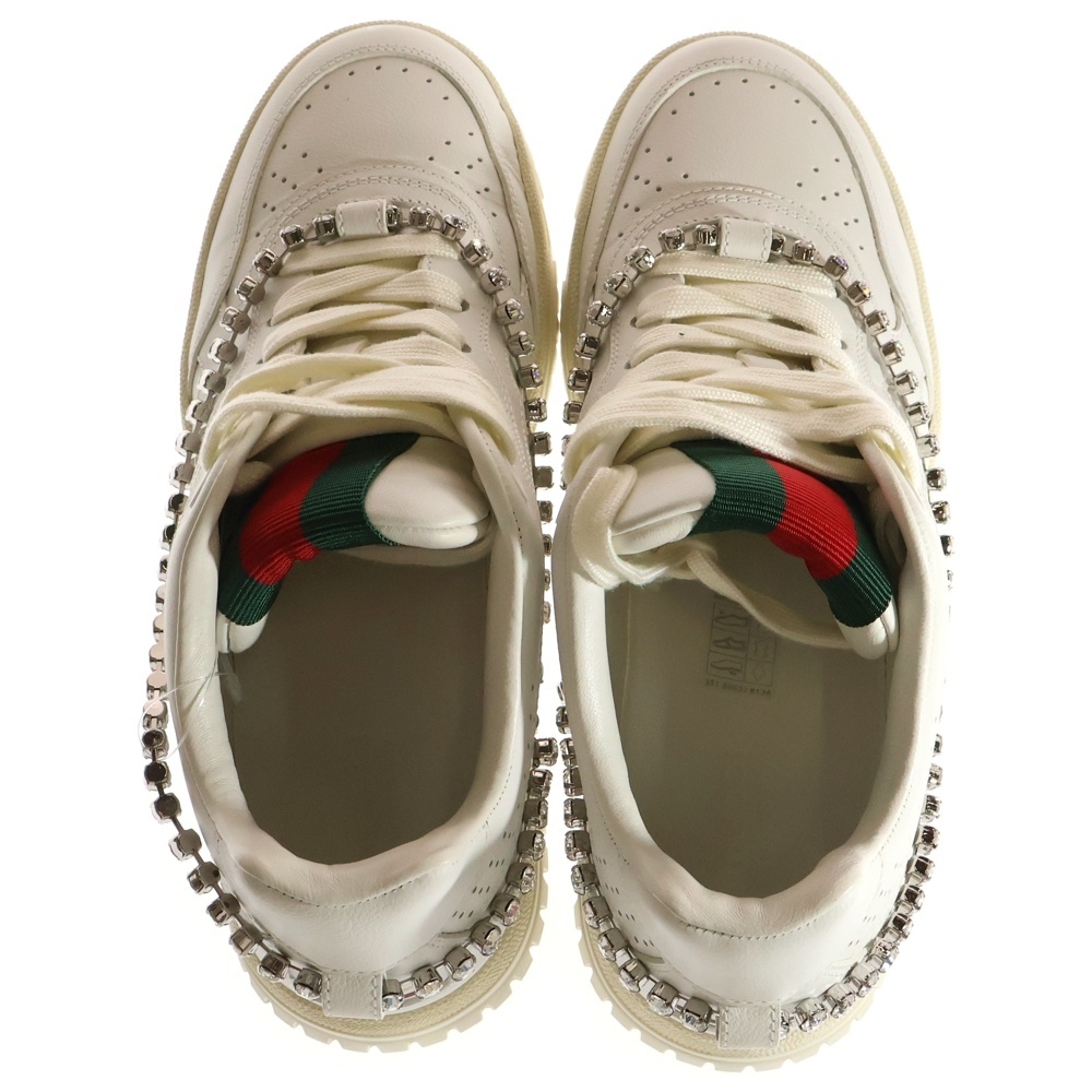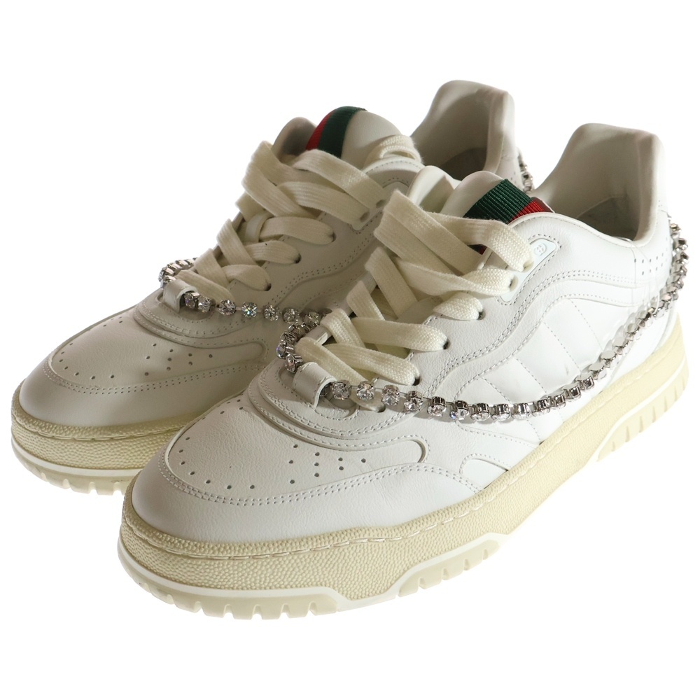 グッチ リウェブ シェリーライン クリスタル ビジューチェーン ロゴプレート レースアップ レザー ローカットスニーカー レディース 795453