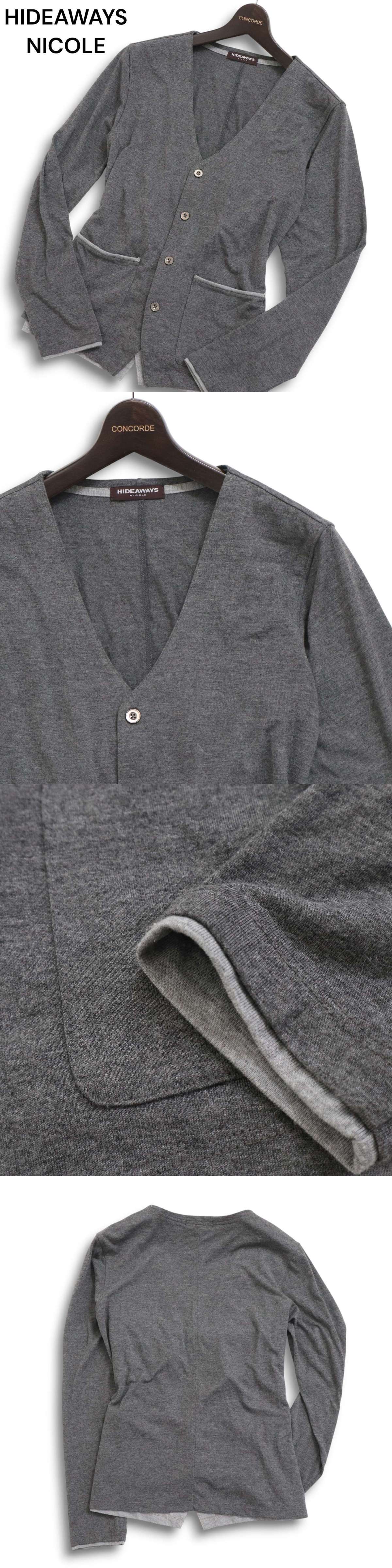 HIDEAWAYS NICOLE ハイダウェイ ニコル 通年★ レイヤード風 カーディガン Sz.46 メンズ 灰 グレー
