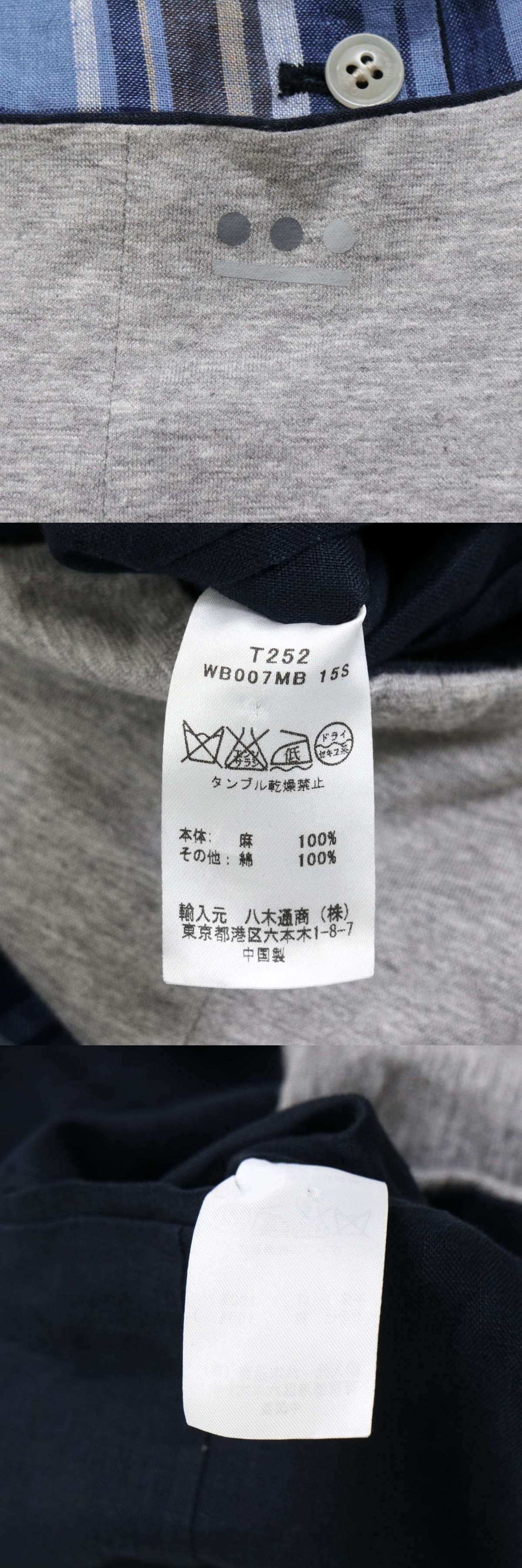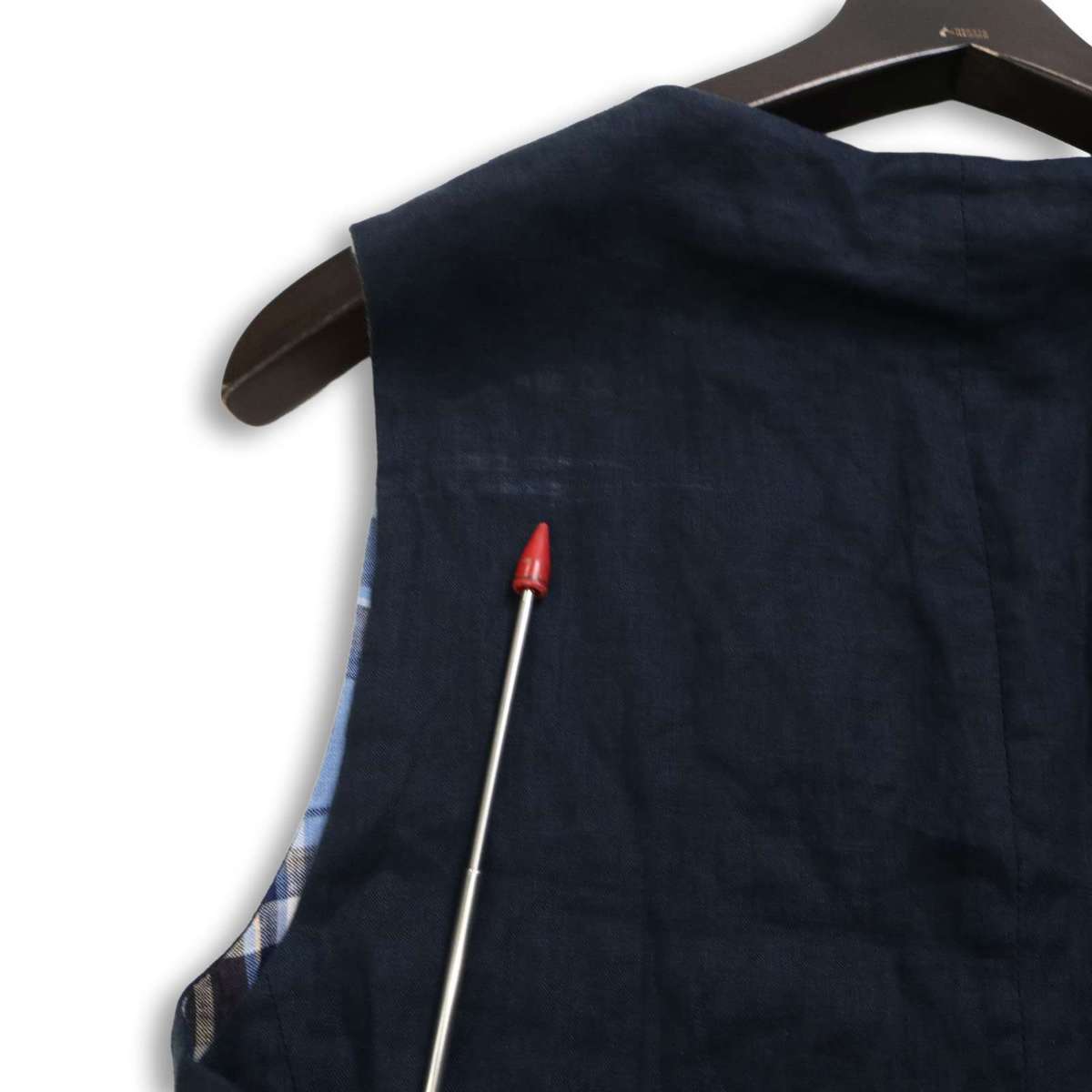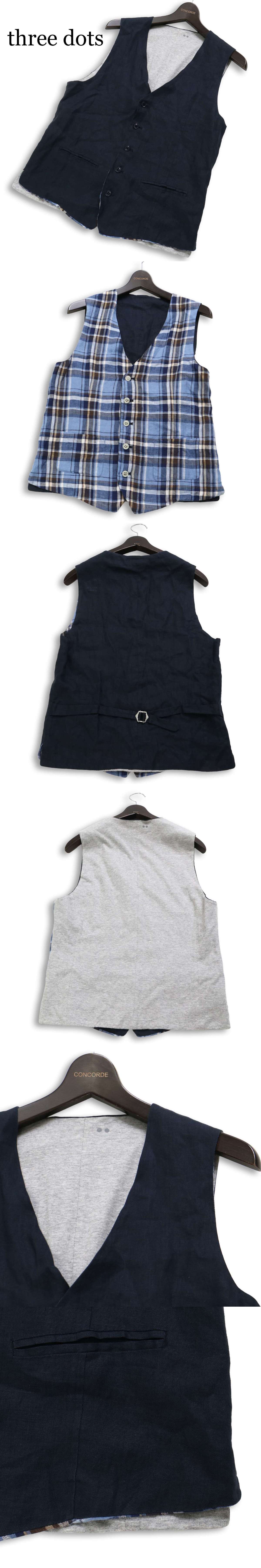 three dots スリードッツ 春夏 麻 リネン100%★ 2WAY リバーシブル チェック ベスト ジレ Sz.L メンズ