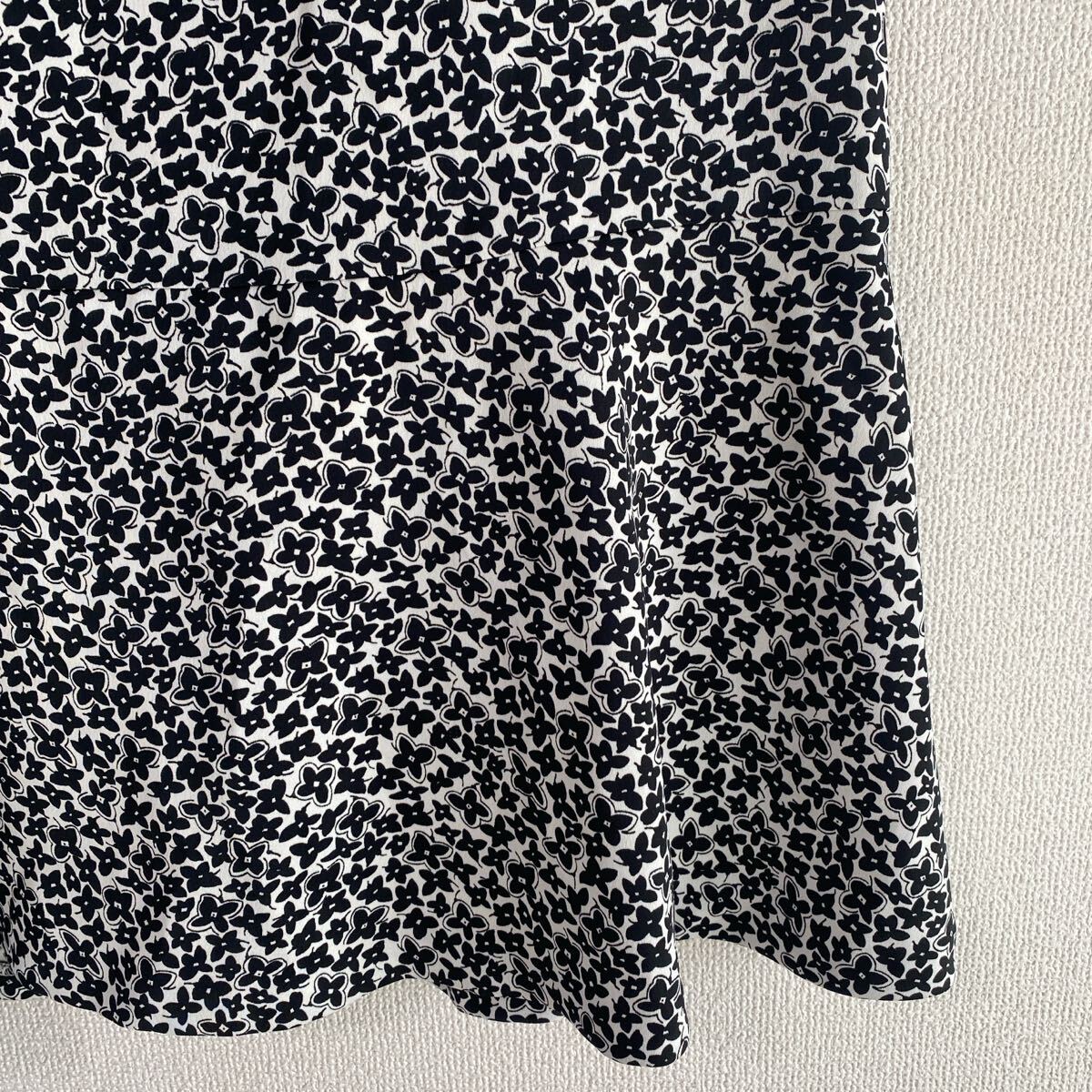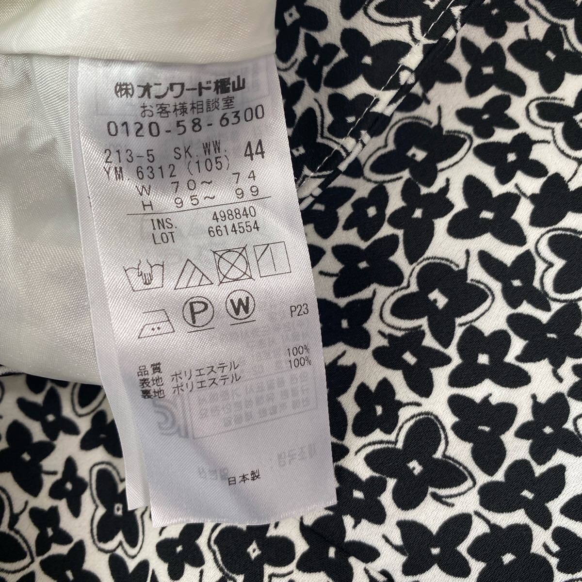 【極美】23区 ニジュウサンク 春夏 ロングスカート W78 黒×白系 花柄 DMW