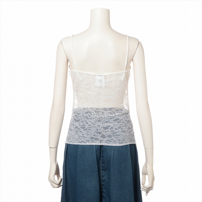 | シャネルのレース素材を使用したキャミソール。 シアーになっていてとても可愛いデザインで胸元のワンポイントの刺繍が目を惹きます。 レイヤリングで浮き出る花柄レースはフェミニンな印象を与え様々な着回しが楽しめるキャミソール、この機会にいかがでしょうか。 |