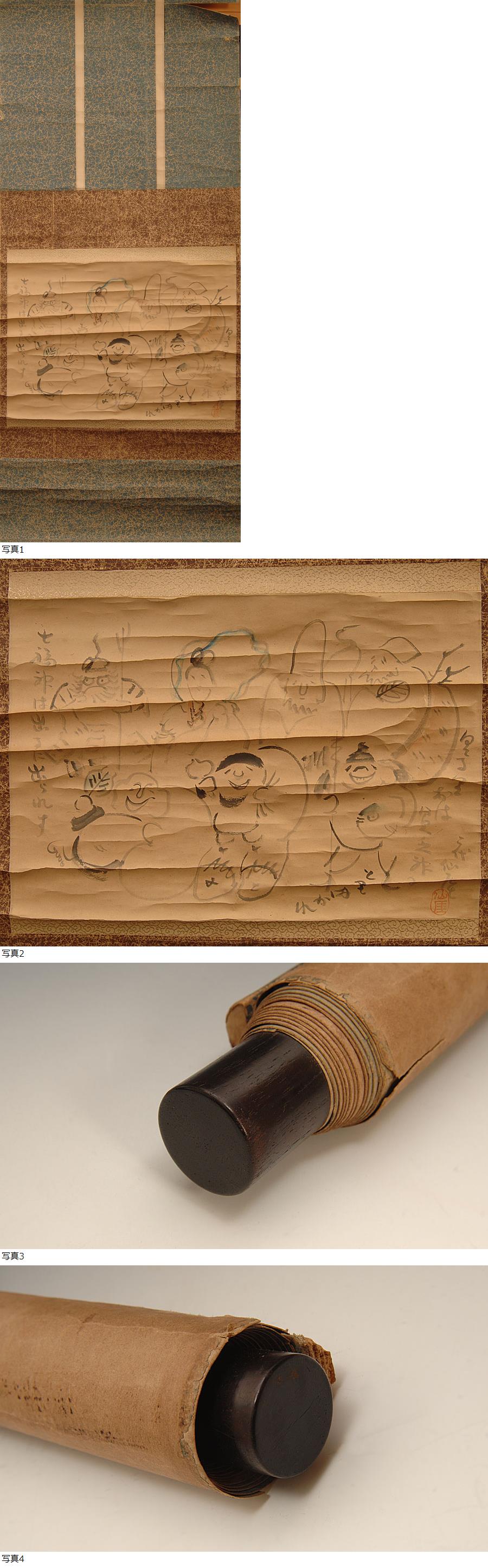 ☆星夢☆87 二代仙崖 款 「七福神図」 紙本 軸装 茶道具