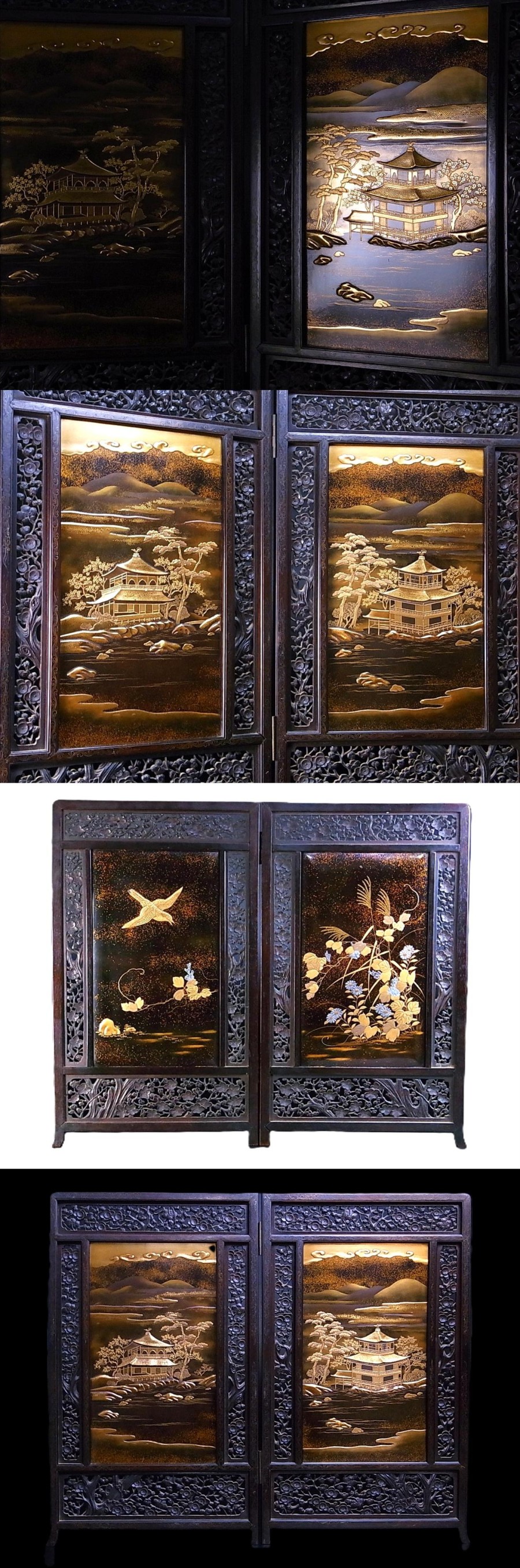 string(128) "推定万博出品作 紫檀製 梅彫り銀象嵌枠 高蒔絵 金閣寺 銀閣寺 二曲屏風 01/28 (水)終了"