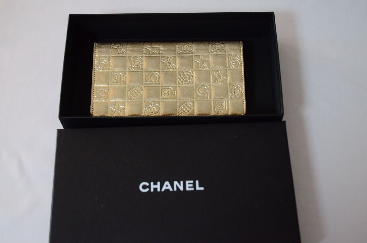 CHANEL シャネル アイコンライン 二つ折り 長財布 シャンパンゴールド