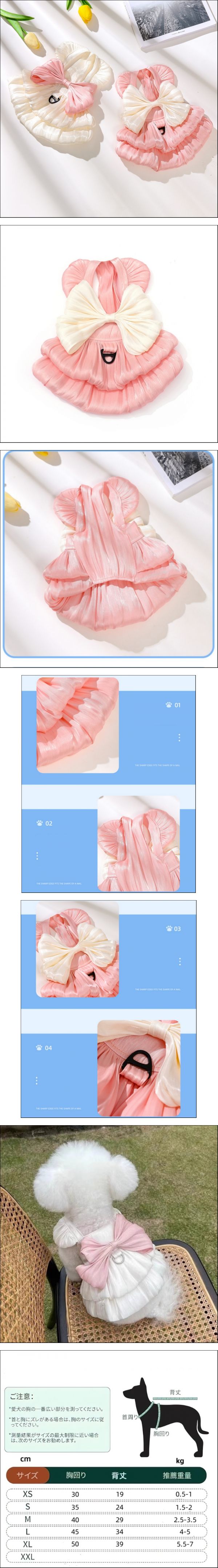 犬服 猫 ペット服 夏用 薄手プリンセスドレス サマーワンピース 大きいちょう結び フック付き おしゃれペット ドッグウエア ピンク-S | |||