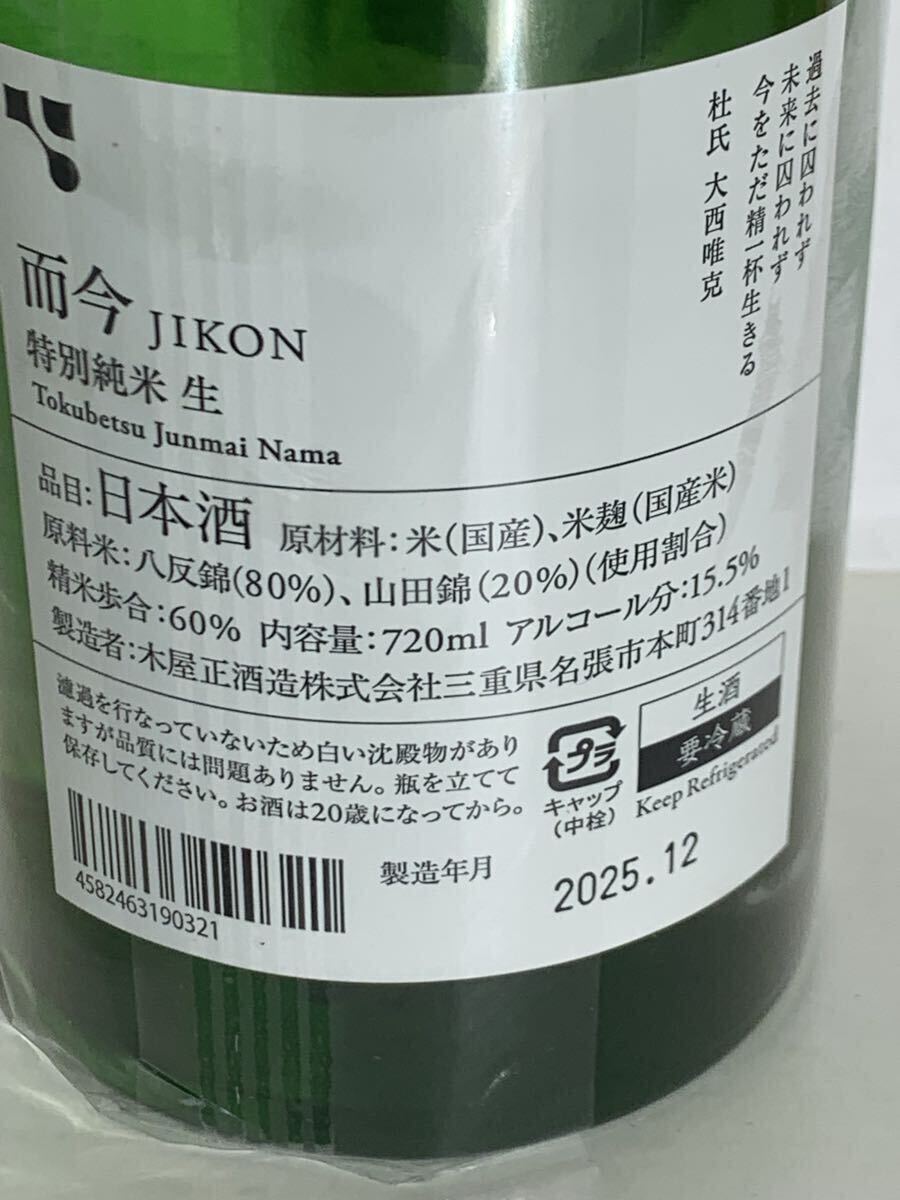 string(48) "而今 特別純米生 720ml 製造年月2025.12"