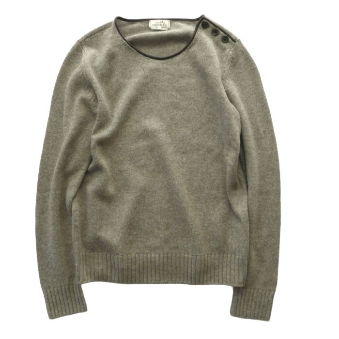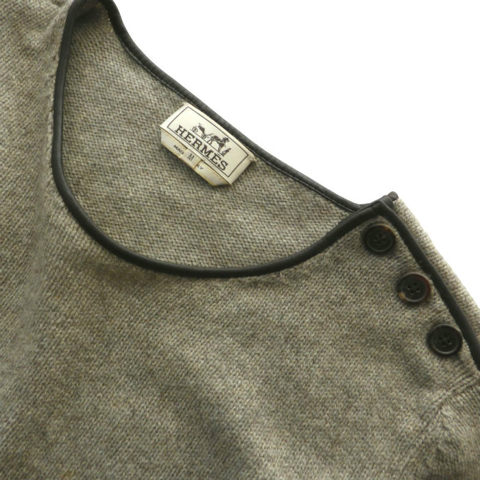 | エルメス(HERMES) ヤク×ウール ミドルゲージ ニット ラムレザー パイピング M グレー ウェア メンズ(中古) |