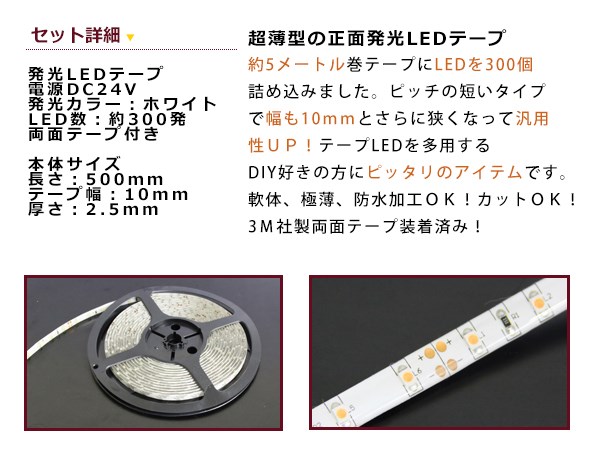 24V専用 5M 300LEDテープ 白ベース