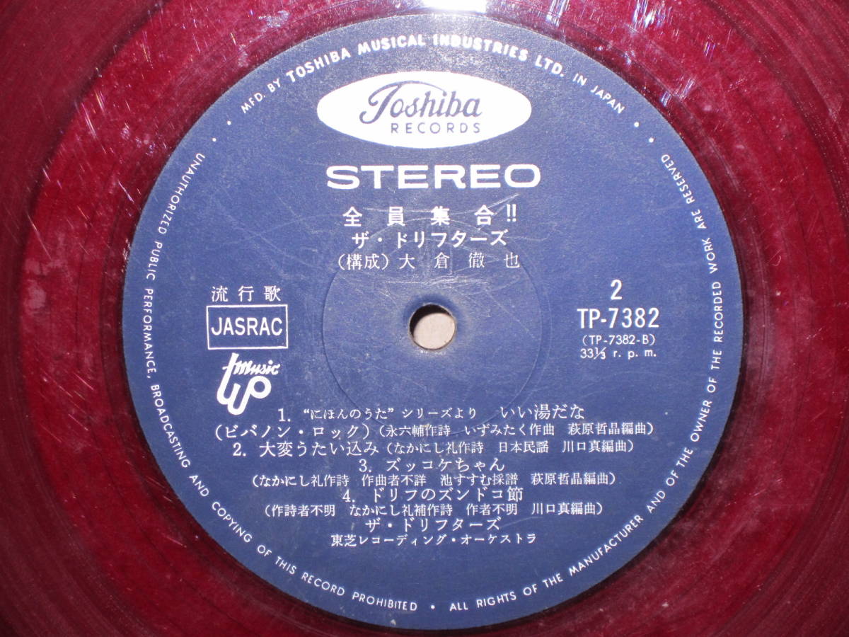 ドリフターズのレコードです。画像でも確認できますが、歌詞の部分がかなり傷んでいます。その他、年数の経過に伴うキズ、汚れなどあるかと思います。