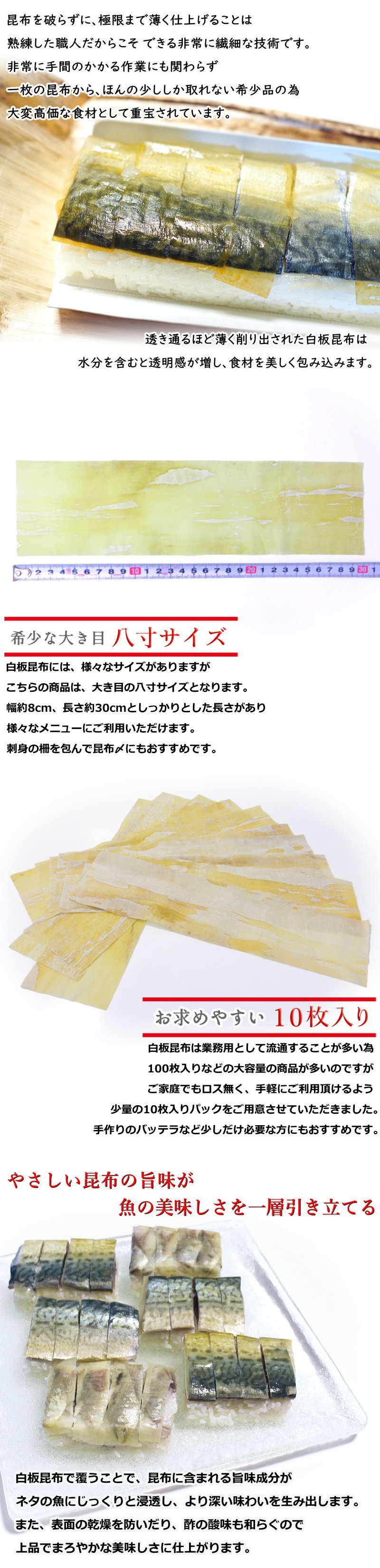 string(147) "【Max】白板昆布 バッテラ作りに!八寸 約30cmサイズ しらいたこぶ 10枚 国産原料 国内加工・白板昆布10枚・"