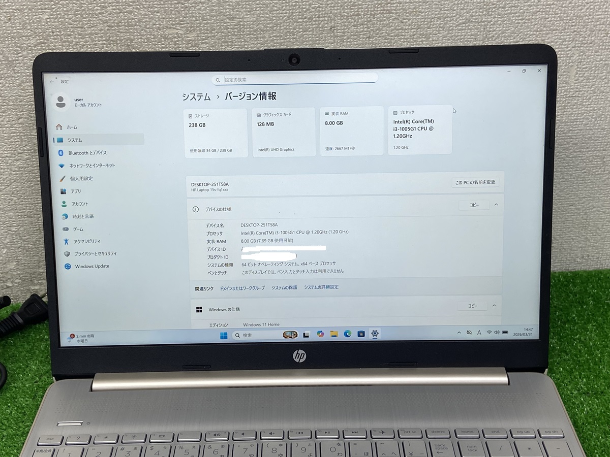 hp laptop 15s-eq1xxx i3 第10世代 ノートパソコン中古 i3-1005G1 ノートPC メモリ8GB NVMe 256GB 15.6 フルHD i3 10th gen laptop