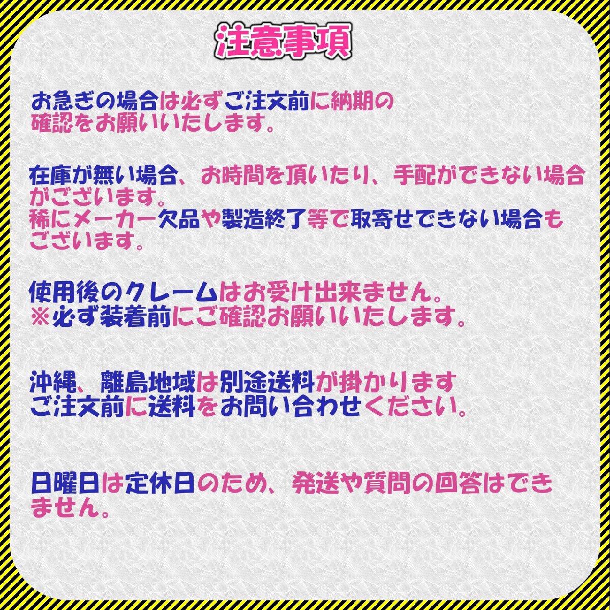 ■定休日(日曜日、祝日)は、発送、質問への回答は行っておりません。