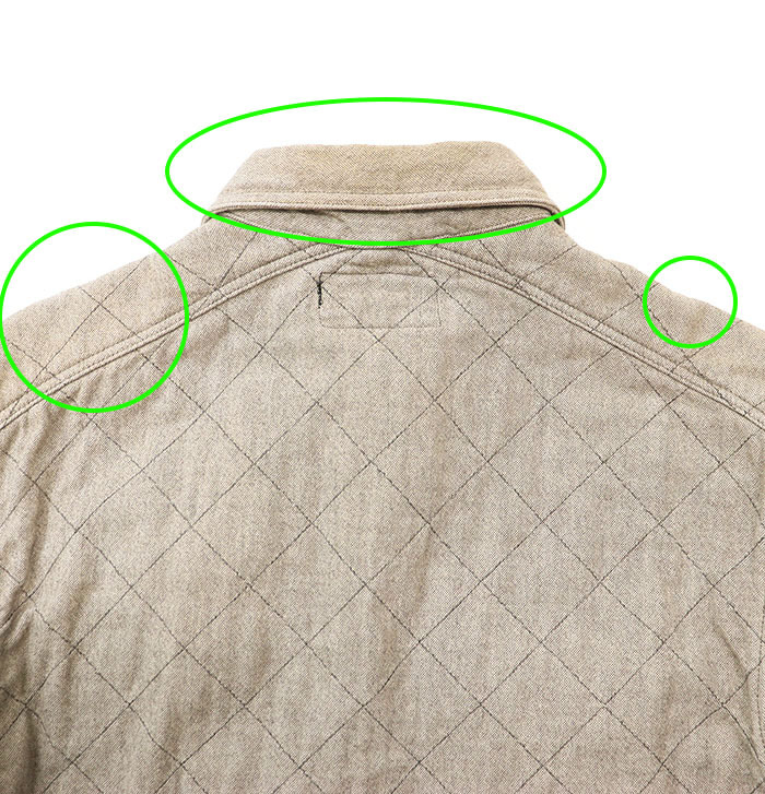 また、襟と袖を主として全体に使用感があるものの、まだまだご着用いただけます。