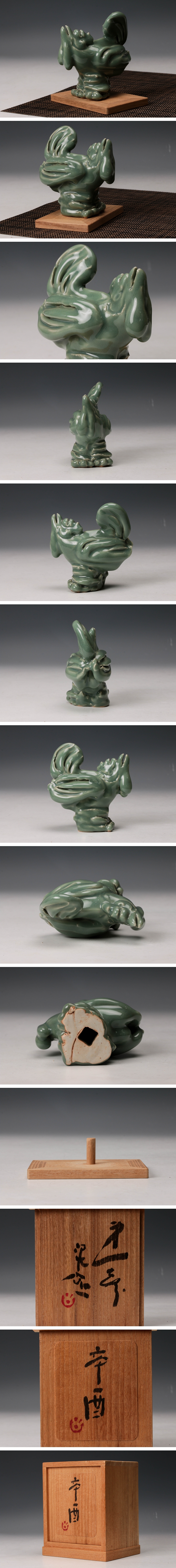 【佳香】清水公照 青瓷酉置物 共箱 置台 本物保証