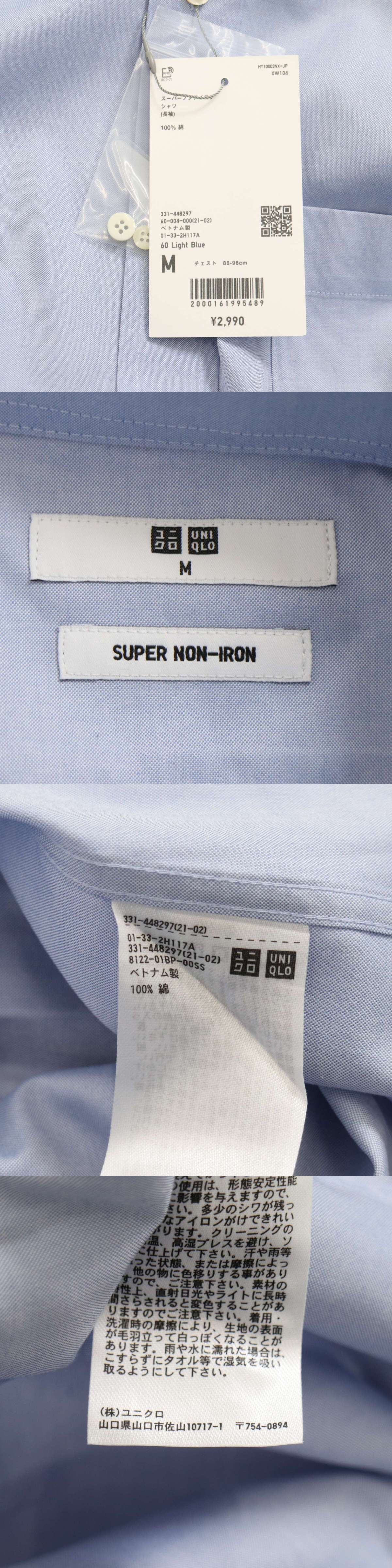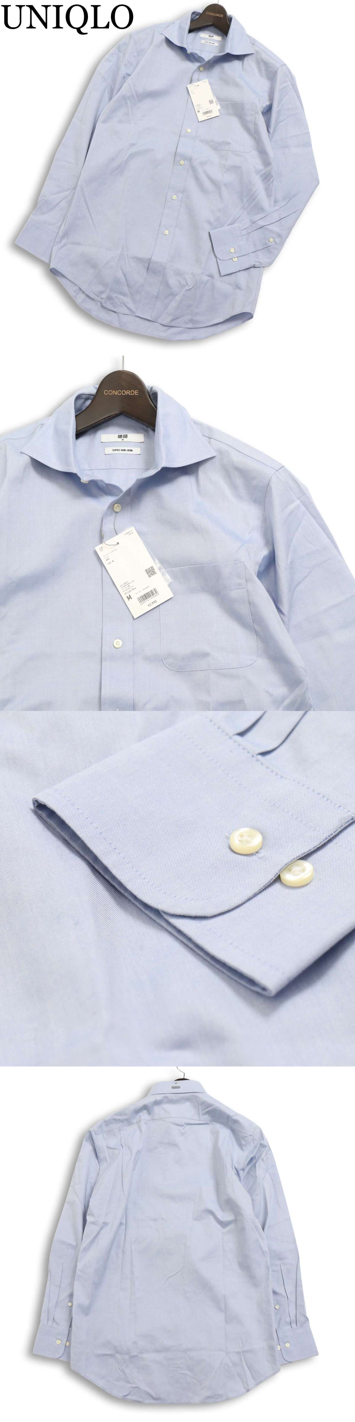 【新品 未使用】 UNIQLO ユニクロ 通年★ スーパーノンアイロン 長袖 シャツ ワイシャツ Sz.M メンズ