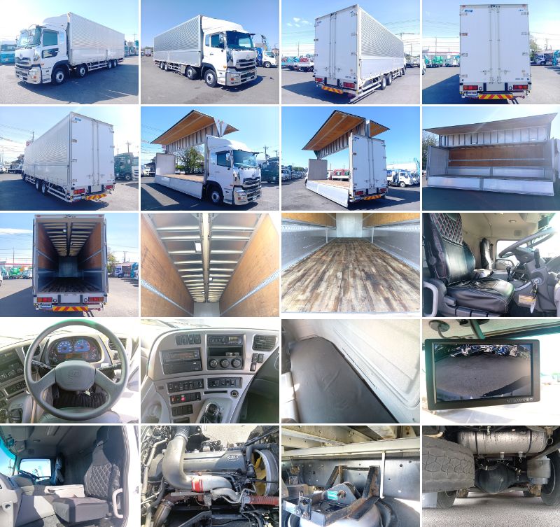 アルミウイング 上物:日本トレクス製 4軸低床 後輪エアサス 積載13.4t 荷台寸法:961×241×270 荷台床:木張り 可倒式中柱 ラッシングレール2段 内フック9対 バックモニター付 ベッド付 走行63万km AT車(エスコット) 排ガス適合(各都市乗り入れ&登録可) タイヤサイズ:245/70R19.5 | |||