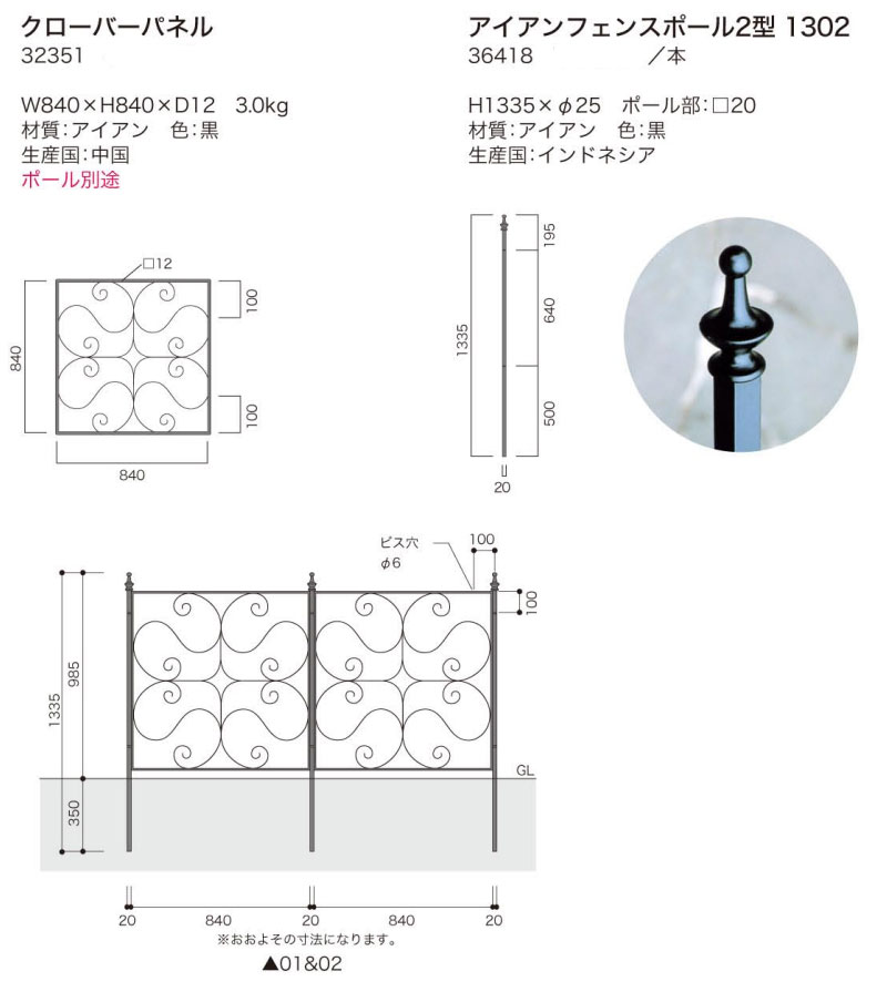 ●アイアンフェンスポール2型 1302 (1本) (36418) →