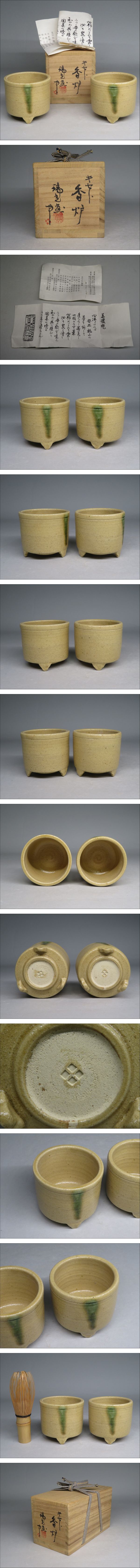 | 香道家の蔵出し◆【黄瀬戸 聞香炉】一対 書付 瑞光窯 香道具◆ 沈香 伽羅/志野流/御家流/御用達 | ||