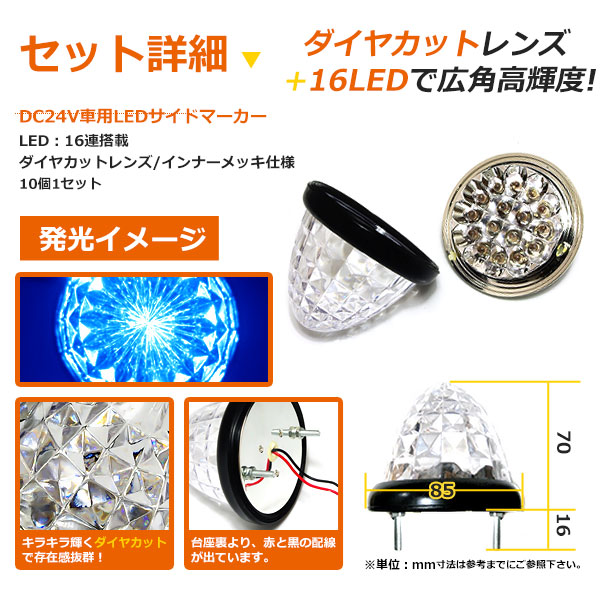 24v専用 クリスタルレンズ LEDサイドマーカー 10個入り