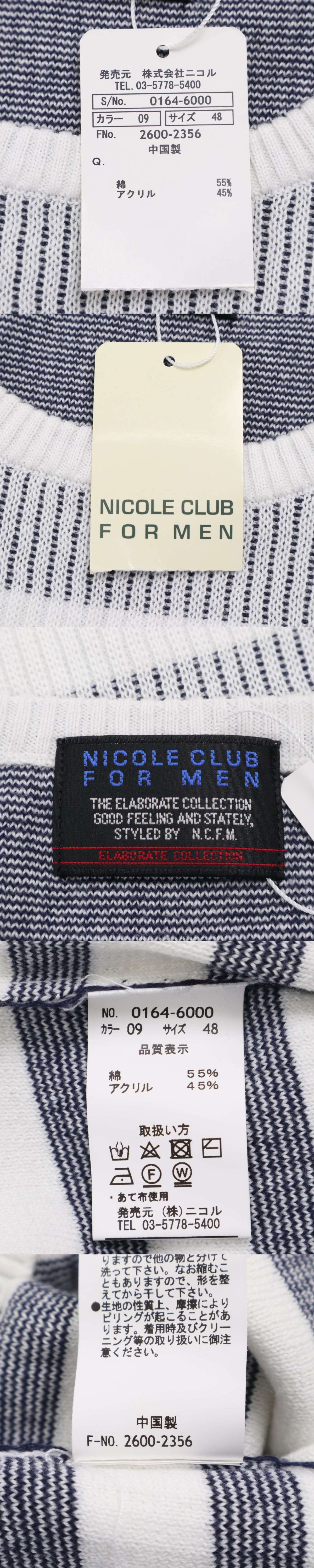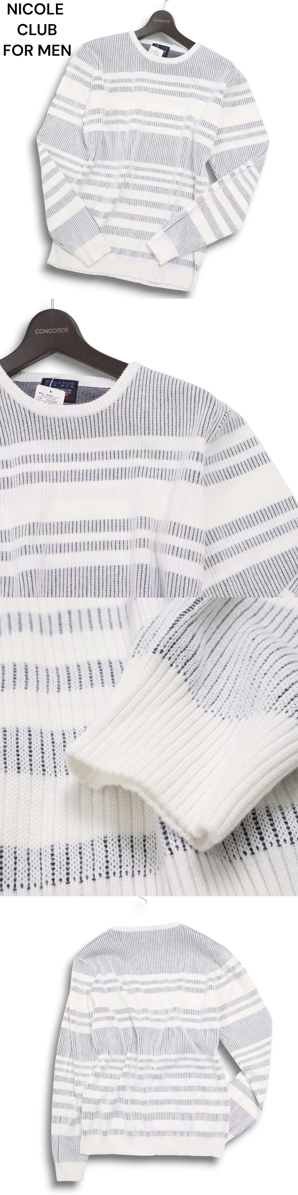 【新品 未使用】 NICOLE CLUB FOR MEN ニコルクラブ フォーメン 秋冬 ボーダー★ ニット セーター カットソー Sz.48 メンズ
