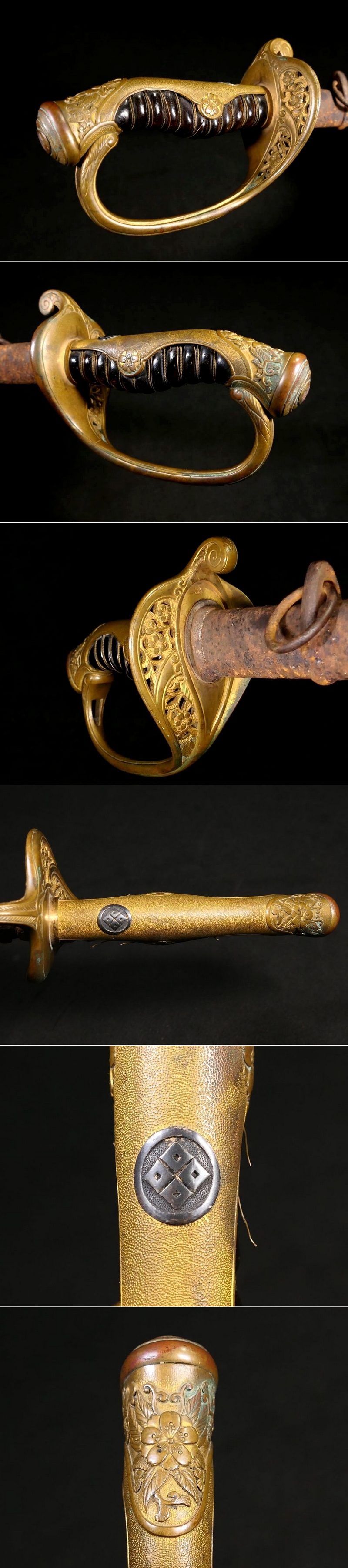 | 商品説明 | 御覧の様な旧日本陸軍 指揮刀のご紹介です。 柄に「丸に四目菱紋」の施されたされた本歌の一品です。 刀身は切られており、刃も落とされております。 コレクション用にいかがでしょうか。 この機会に是非手に入れて下さい。 御覧の様な状態です。 鞘の錆や柄の針金の切れが見られます。 画像にてご確認下さい。 その他、古い物ですので多少の時代傷みはご理解下さい。 ミリタリーに関しましてはあまり専門知識がございませんので、 商品の説明および状態等含めまして詳しくは画像にてご判断下さい。 |