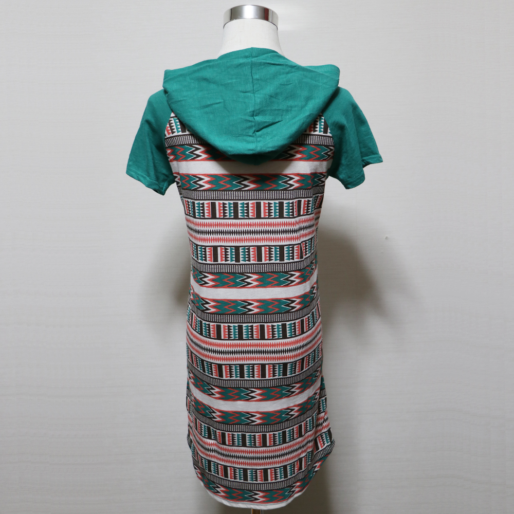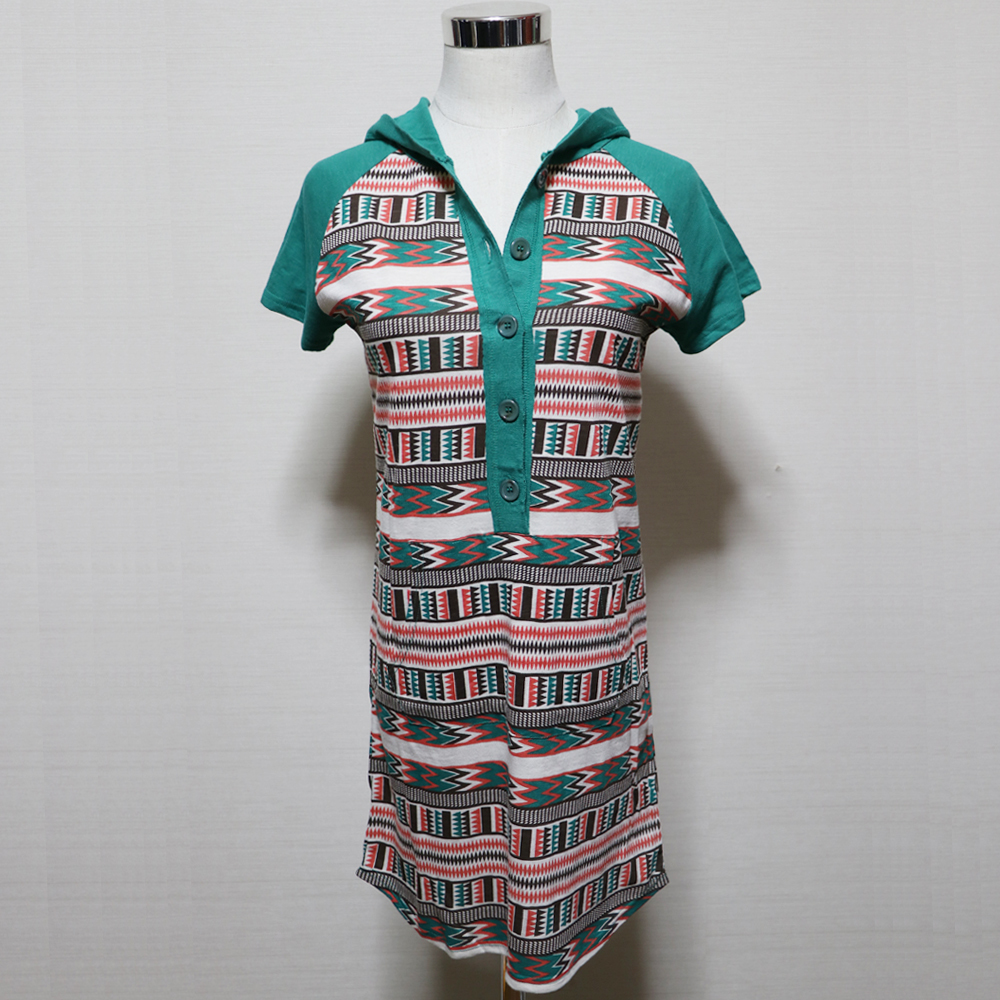 レトロ感のあるエスニック柄の切り替えに前ボタンとフードの組み合わせがとても素敵です。