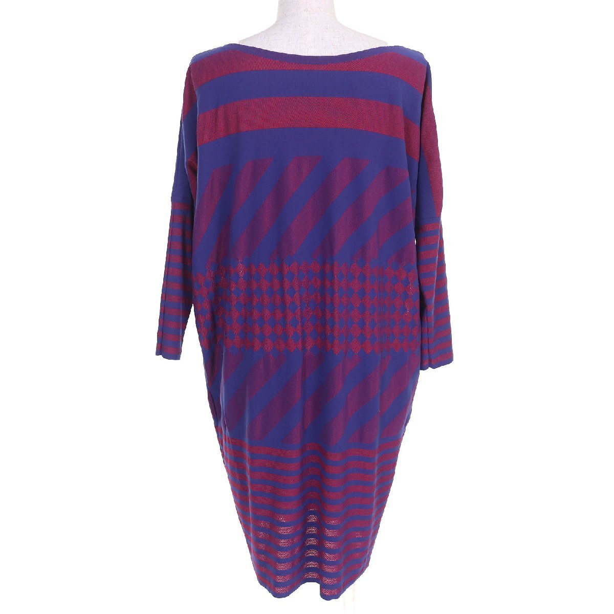 string(166) "美品△PLEATS PLEASE プリーツプリーズ イッセイミヤケ PP34LT962 A-POC エイポック 総柄 長袖 ワンピース ブルー レッド系 3 正規品"