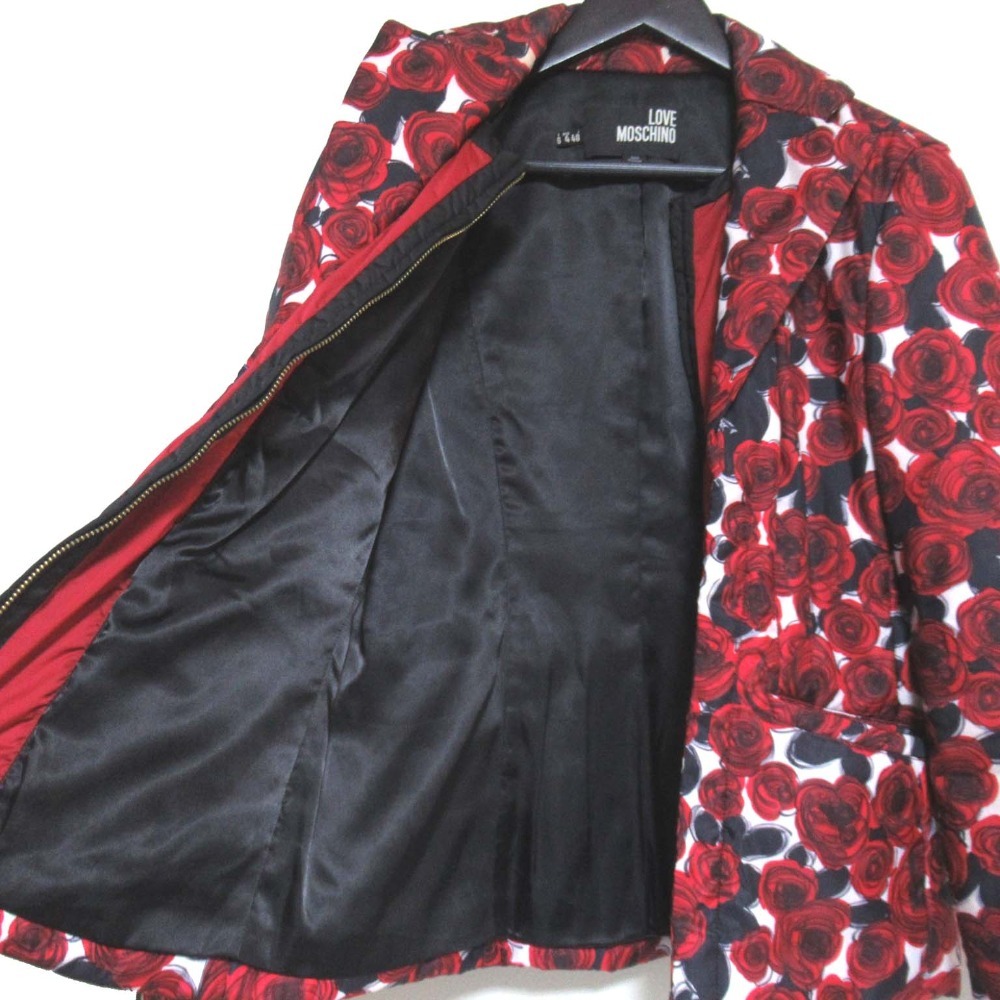 string(12704) " 商品名:LOVE MOSCHINO ラブモスキーノ ローズプリント ジップアップ パデッド ジャケット サイズI40 レッド系