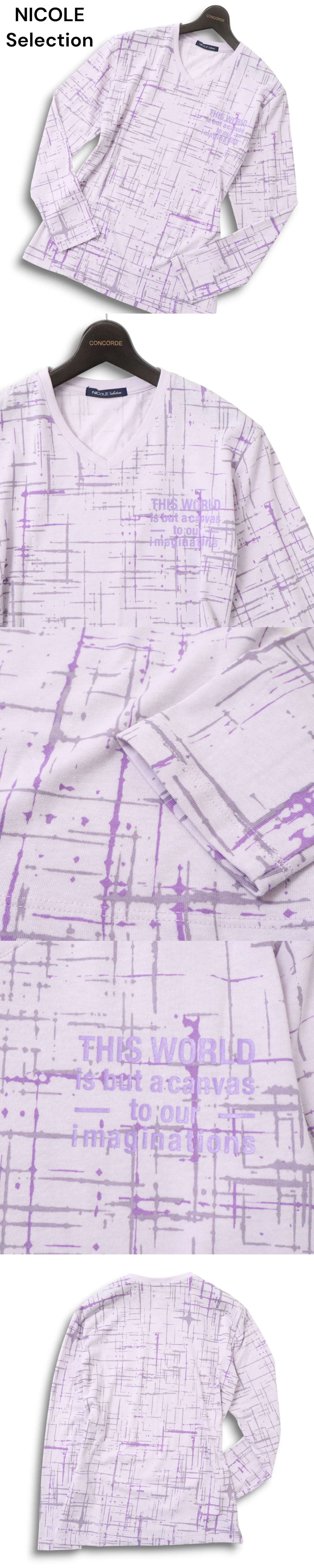 NICOLE Selection ニコル セレクション 通年★ 総柄 長袖 Vネック ロンTシャツ カットソー Sz.48 メンズ